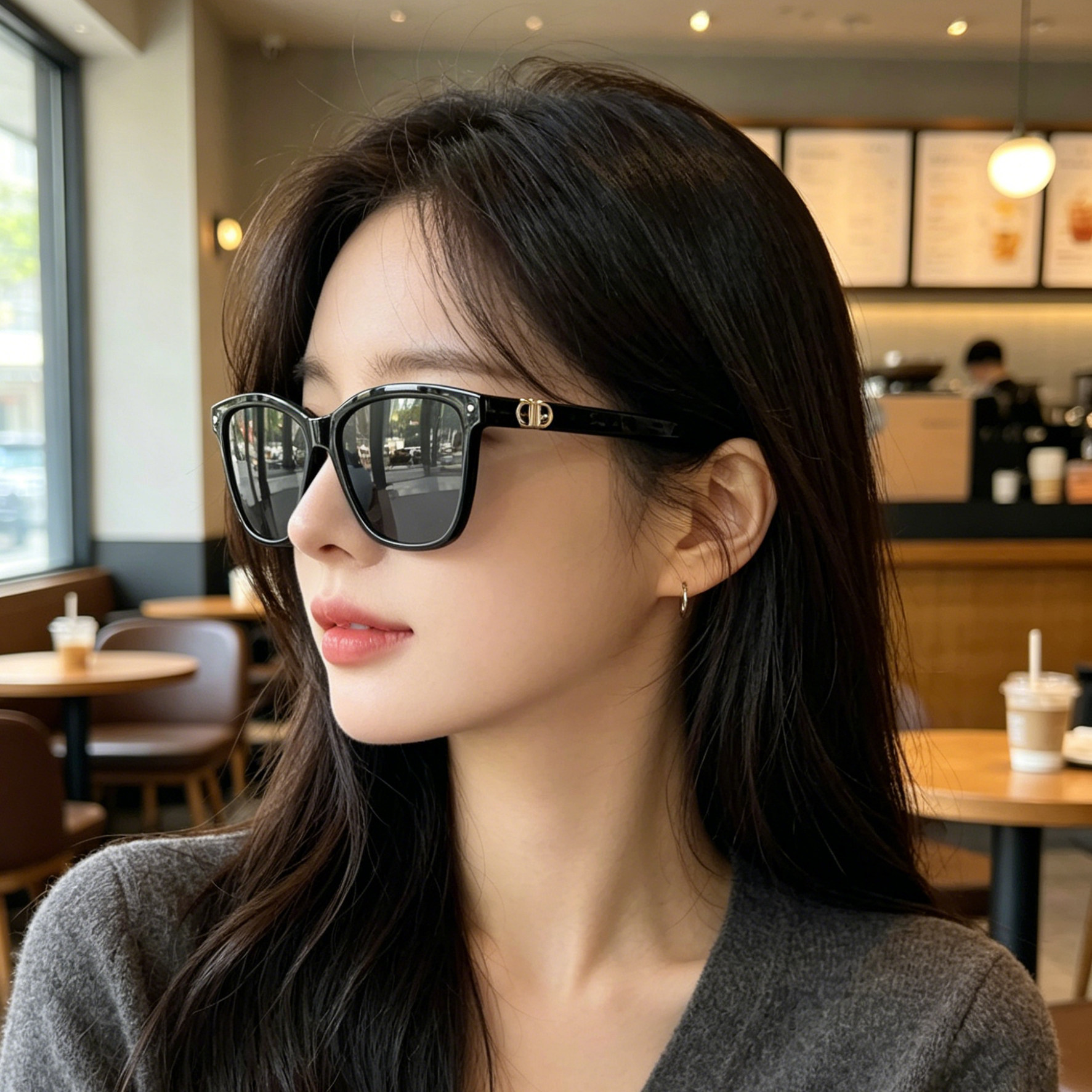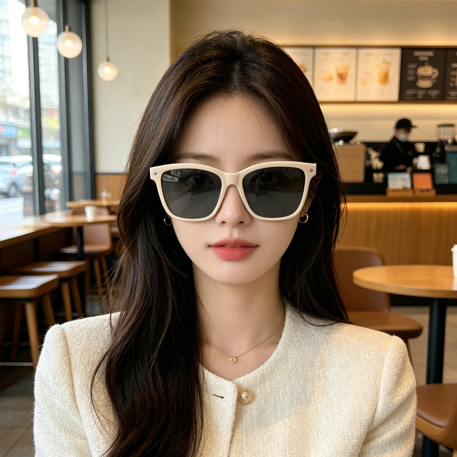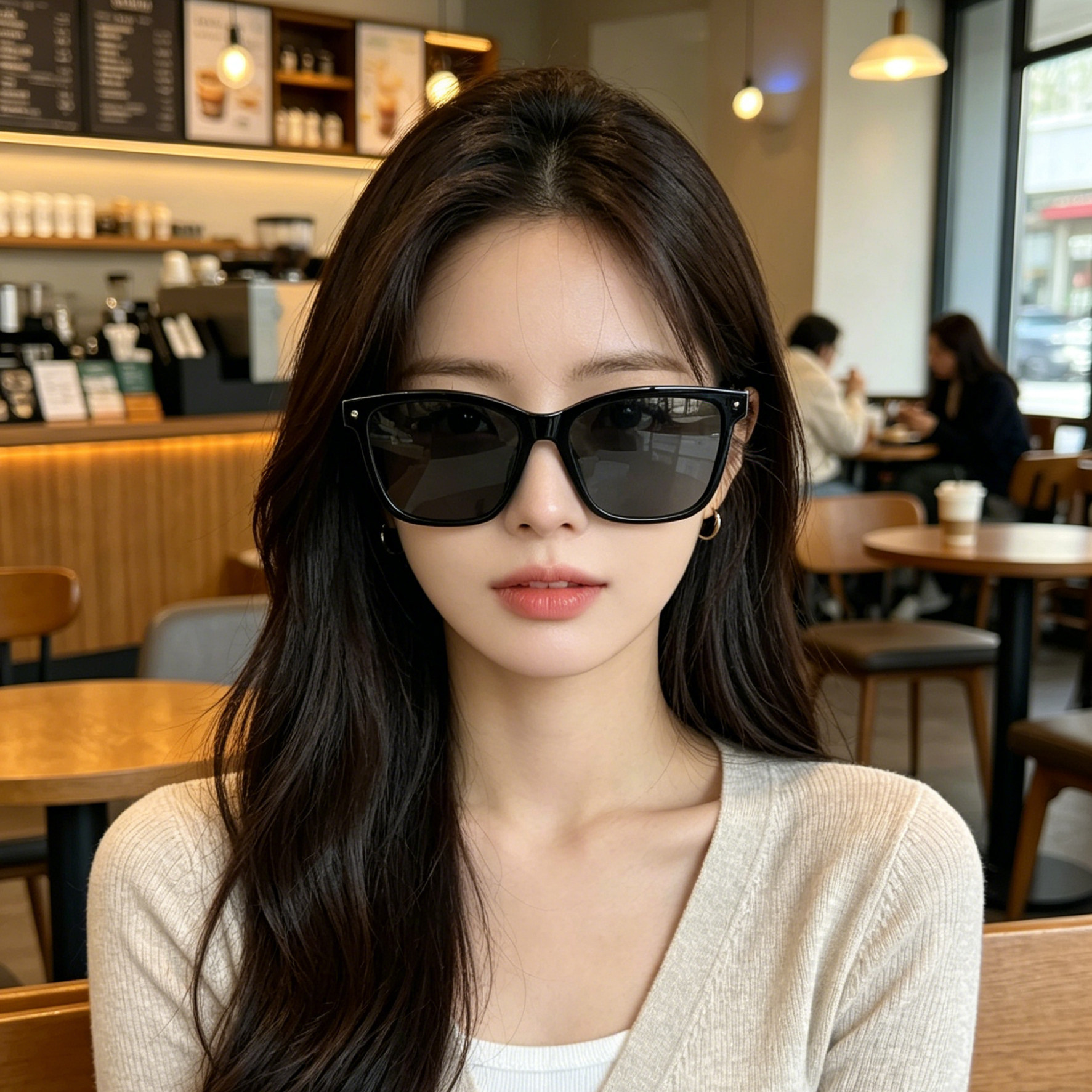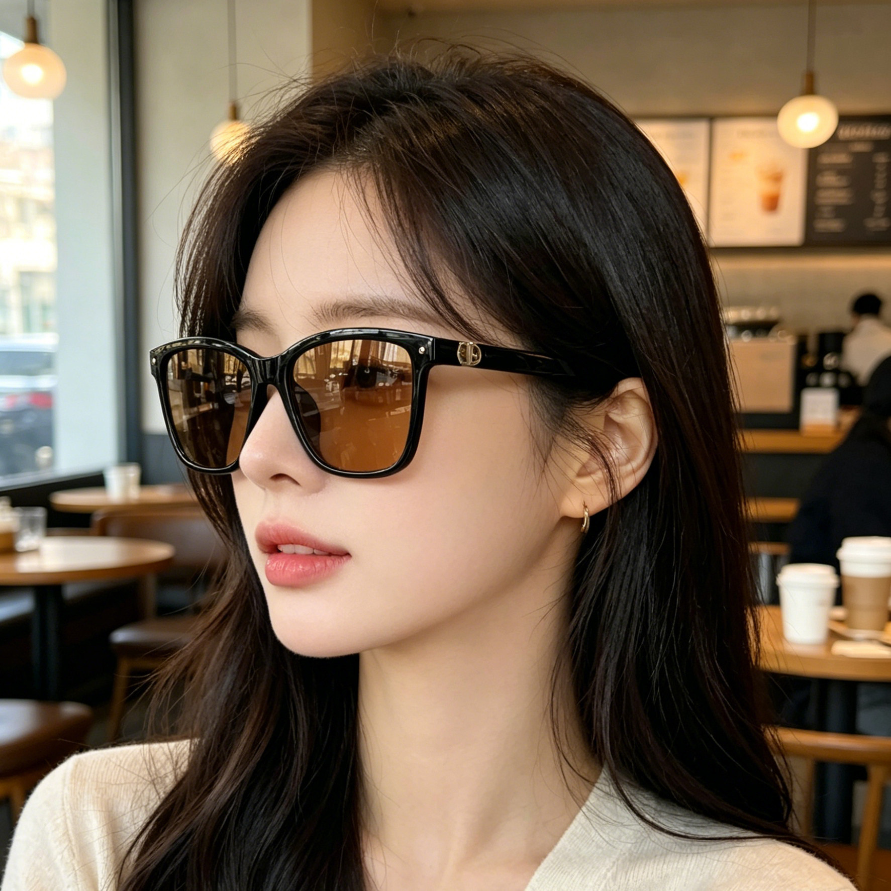 简约复古方框圆脸太阳镜男女通用黑色遮阳茶色镜片墨镜防紫外线潮