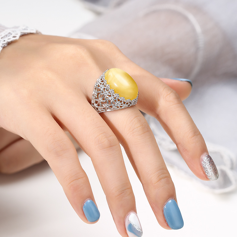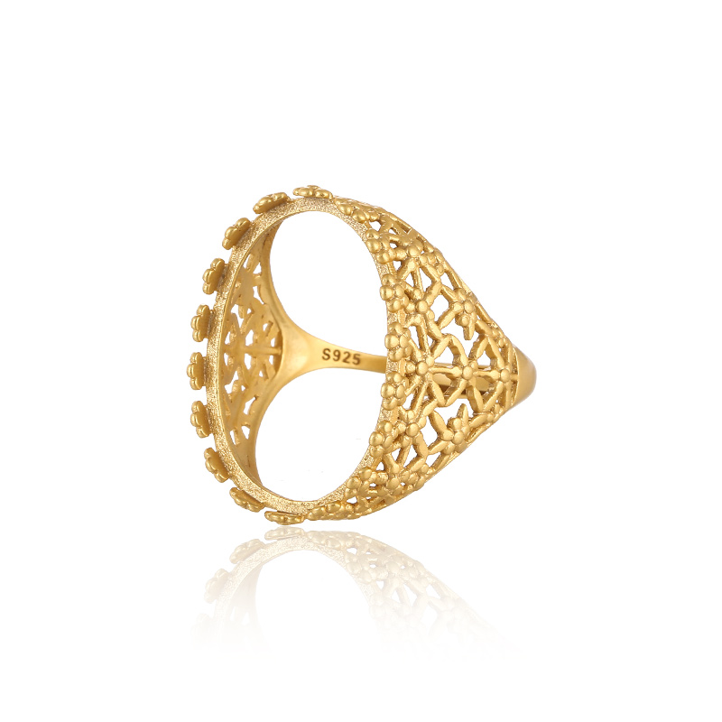 925纯银男女戒指空托复古镂空花纹diy蜜蜡绿松琥珀南红戒托银托