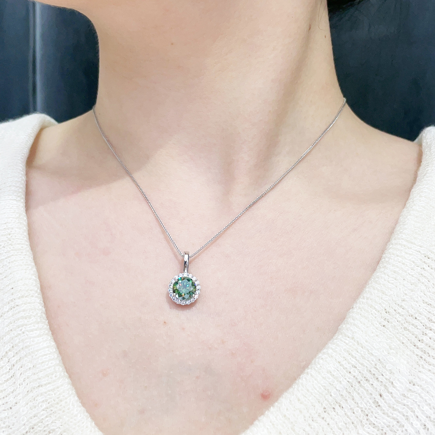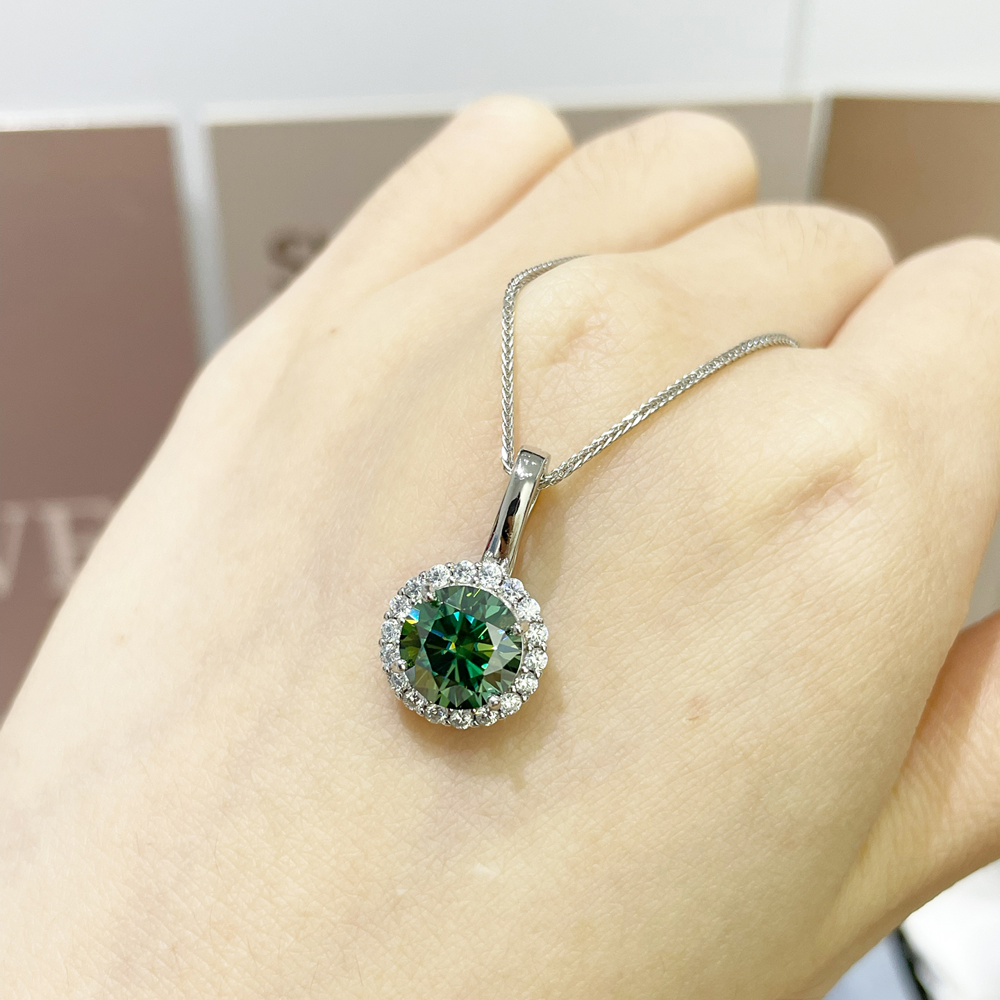 绿色莫桑钻2克拉吊坠高透圆形S925纯银镶嵌项链轻奢送女朋友礼物