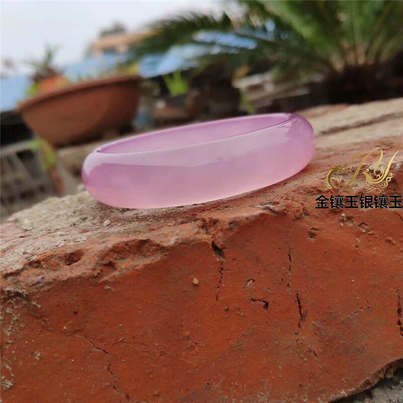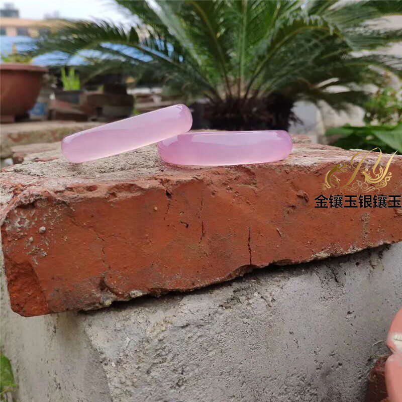 冰种粉红色玉髓手镯芙蓉粉玉石水晶玛瑙镯子时尚闺蜜礼物女送妈妈