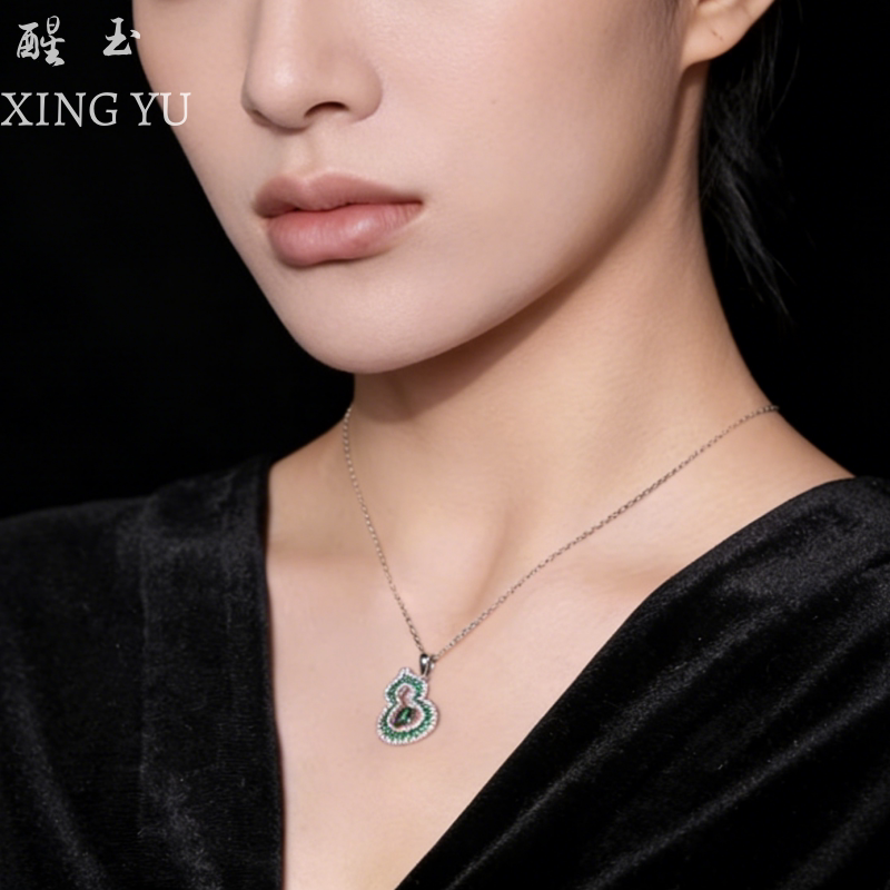 绿色葫芦项链女款2026新款爆款高级感宝石吊坠祖母绿颈链520礼物