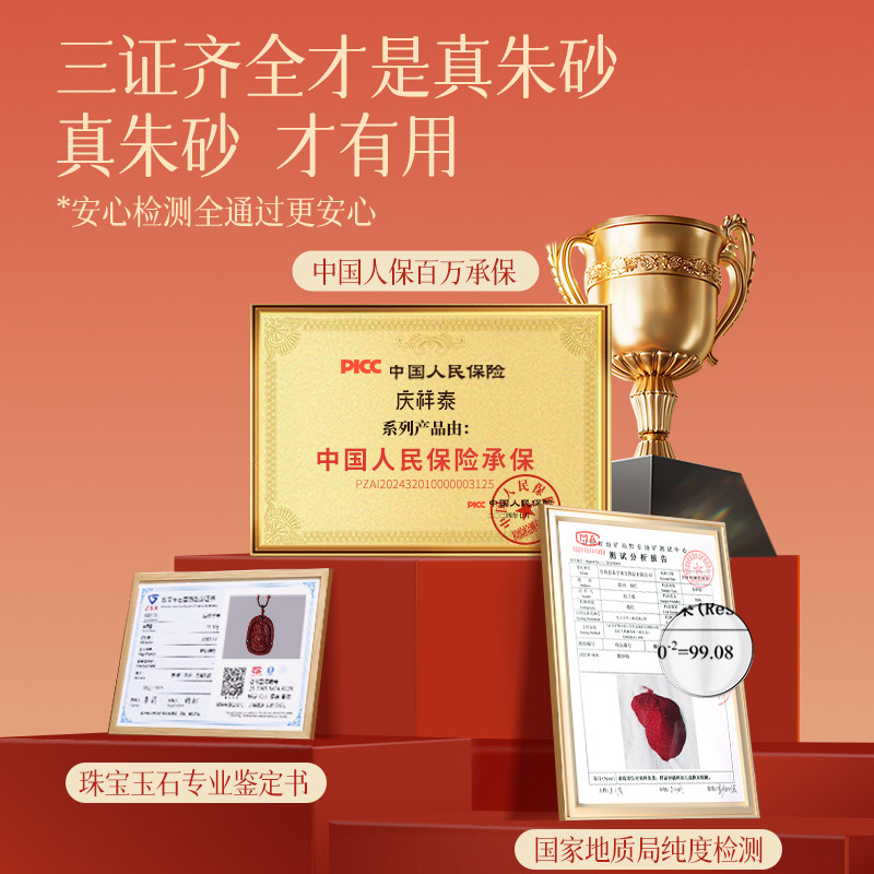 庆祥泰朱砂吊坠本命年生肖守护神属马女款项链男士挂件吉祥佩戴物
