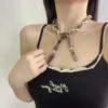 复古典雅格子布料珍珠缠绕项链时尚休闲简约百搭潮流设计锁骨链女