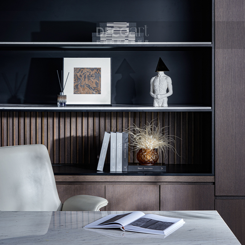 样板间家具展厅书柜搭配金属雕塑挂画书架书档意式极简摆件摆件小