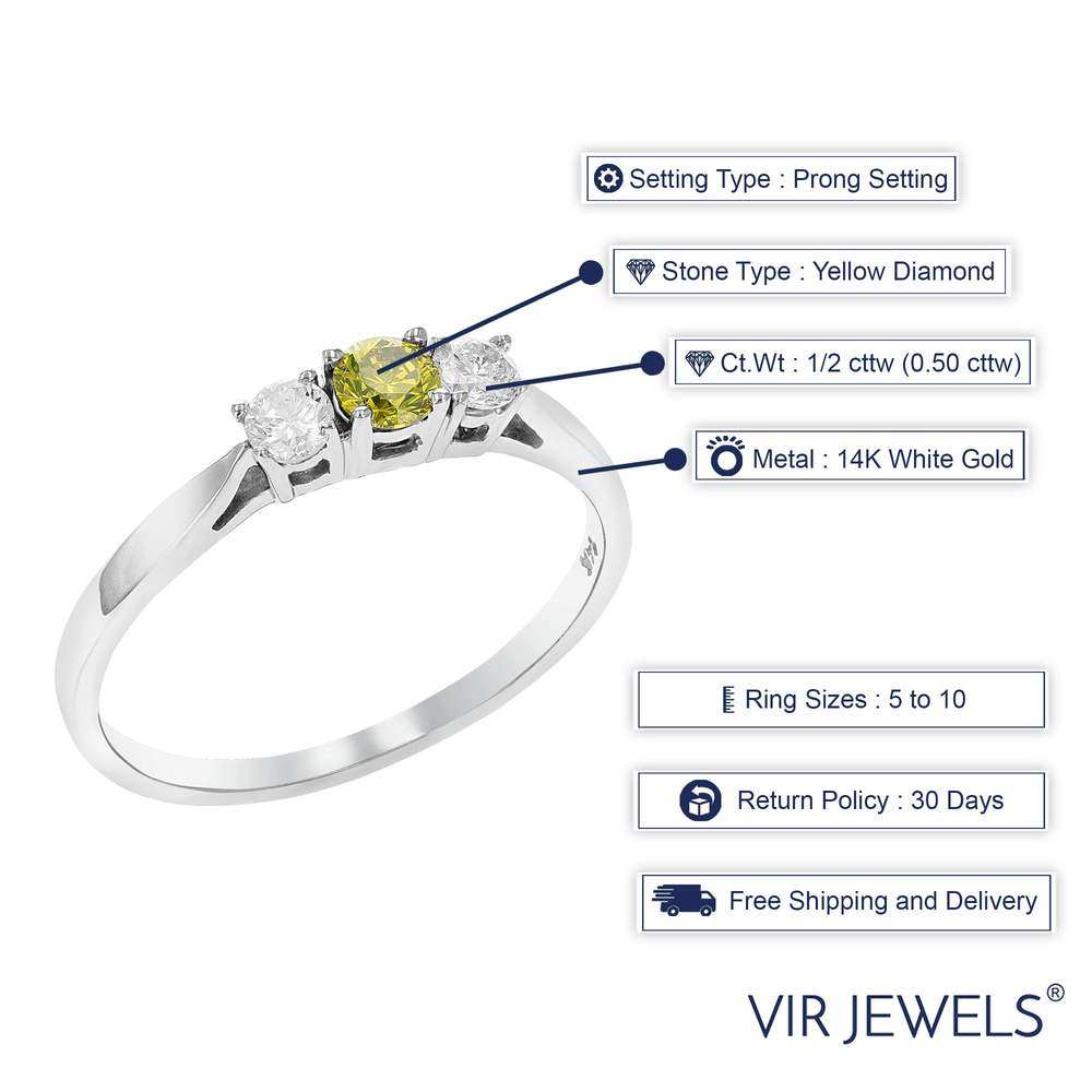 自营 vir jewels 1/2 cttw 3 石黄色和白色钻石订婚戒指 14K 白金