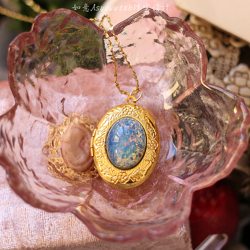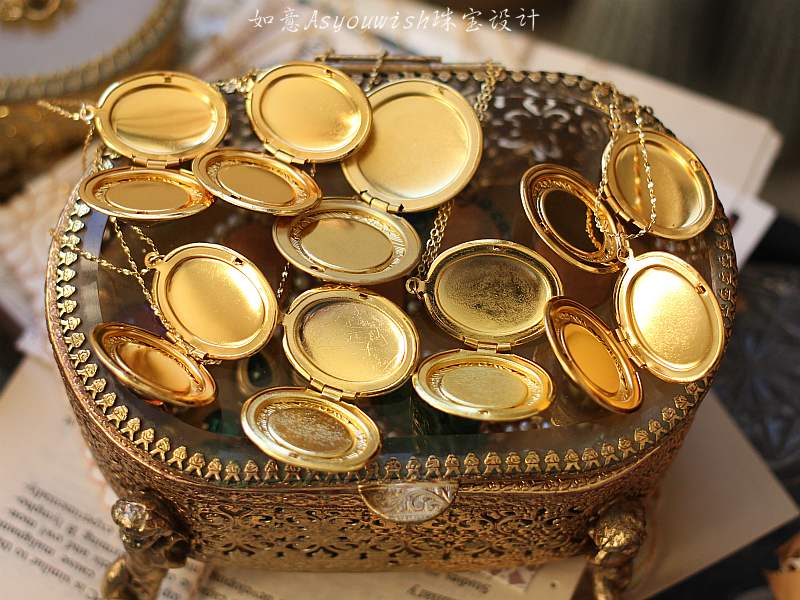AYW明媚-西洋回流古董14K包金照片相片盒吊坠项链锁骨链vintage女