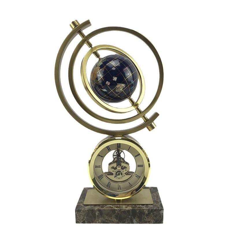 现代轻奢高档金属浑天仪地球仪时钟摆件座钟样板间客厅酒柜桌面