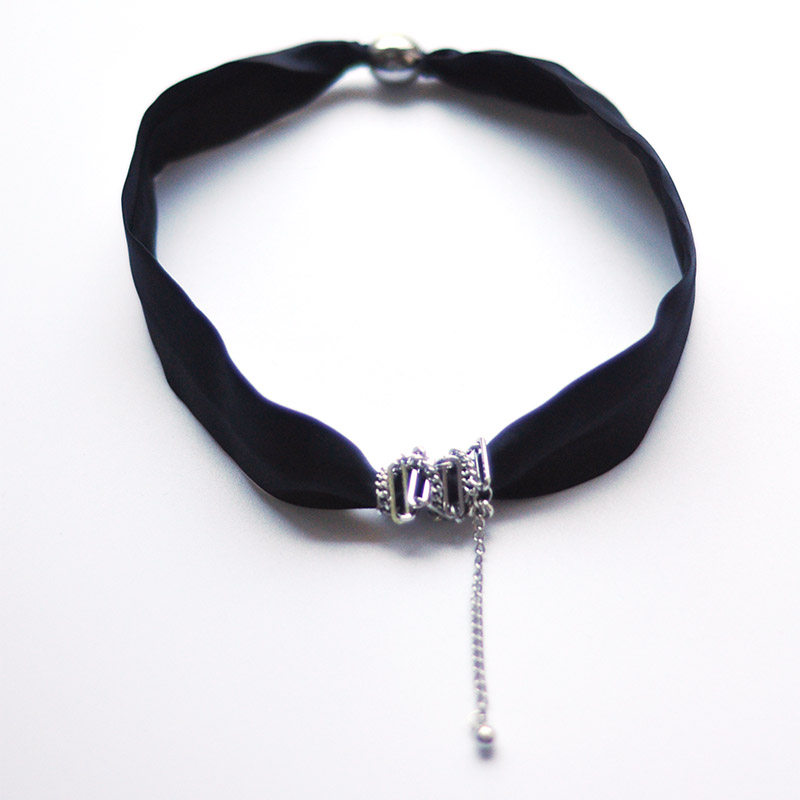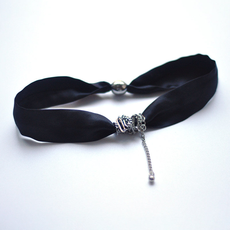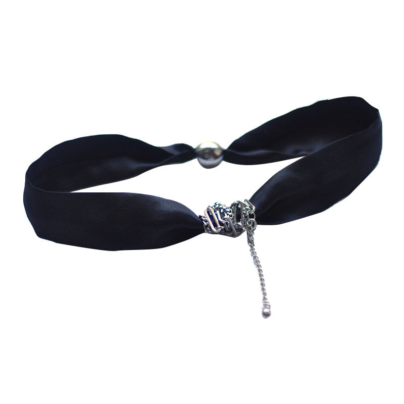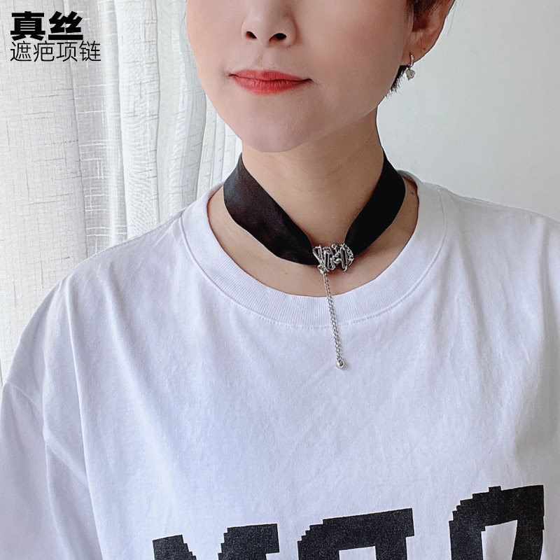 夏天甲状腺遮疤脖子配饰配t恤的项链丝巾锁骨链黑色真丝颈带女