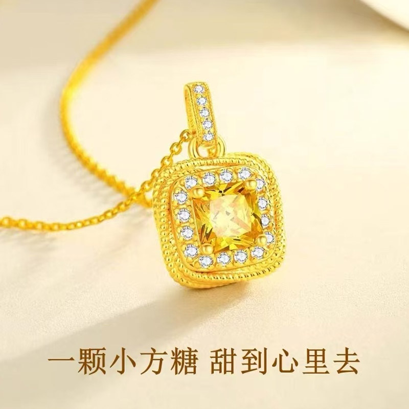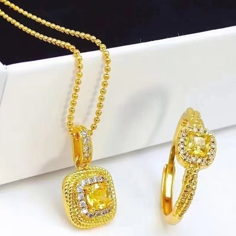 金店同款沙金小方糖戒指黄钻戒指仿真金色钻戒项链耳钉结婚假三金