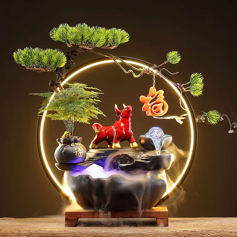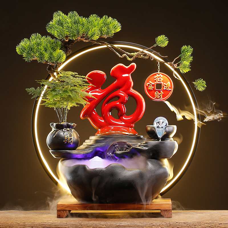 创意招财猫流水客厅办公室装饰摆件桌面循环水新中式送礼开业礼物