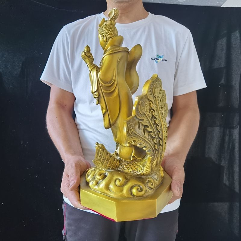 纯黄铜九天玄女娘娘神像摆件圣母站孔雀台执剑仙女家居供奉装饰
