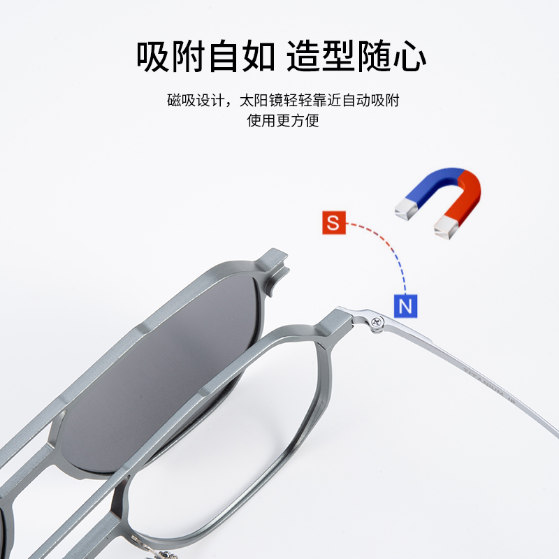 飞行员双梁磁吸三合一近视墨镜男偏光太阳镜开车大脸戴防眩光眼镜