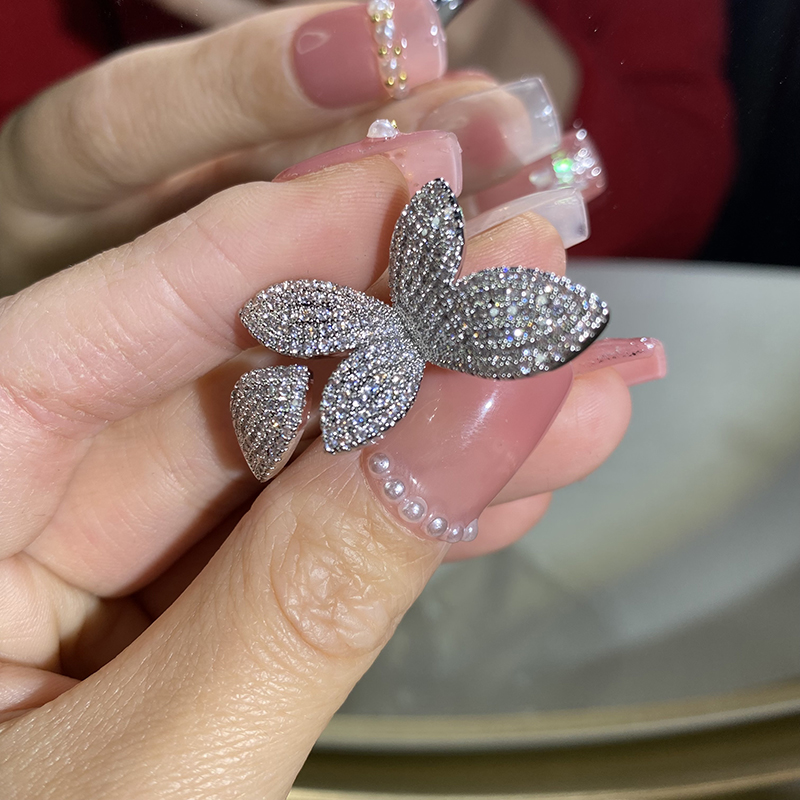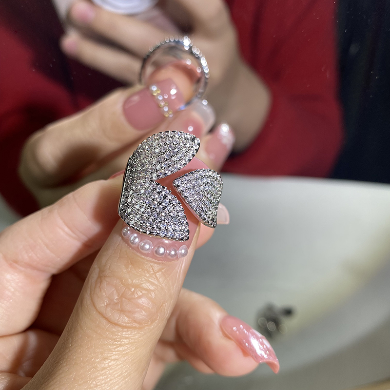 欧韩饰品 微镶锆石花朵开口戒指女ins潮可调节高级感小众设计指环