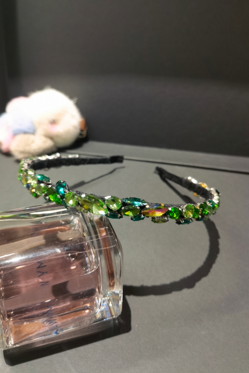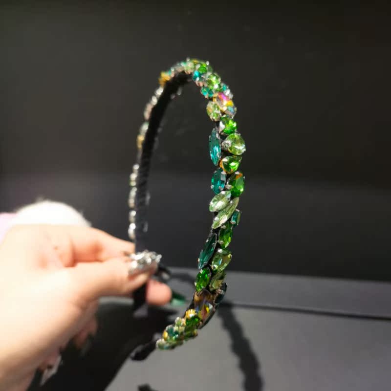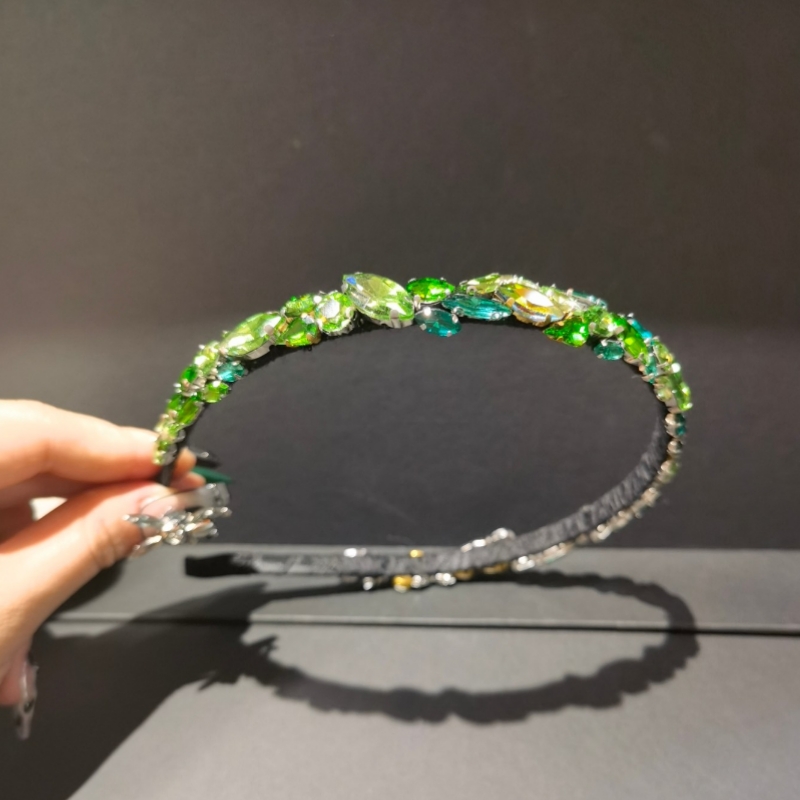 手工缠绕编制头箍精致奢华半宝石天然水钻发箍甜美绿色爱心发饰
