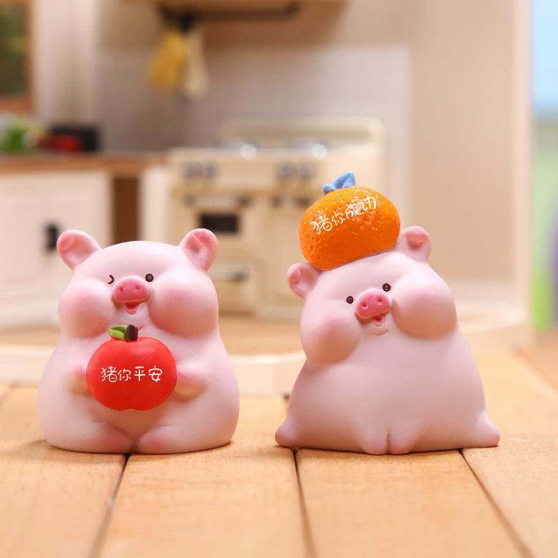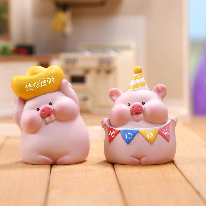 可爱猪囡囡迷你摆件治愈系工位房间桌面装饰品汽车家居蛋糕礼物