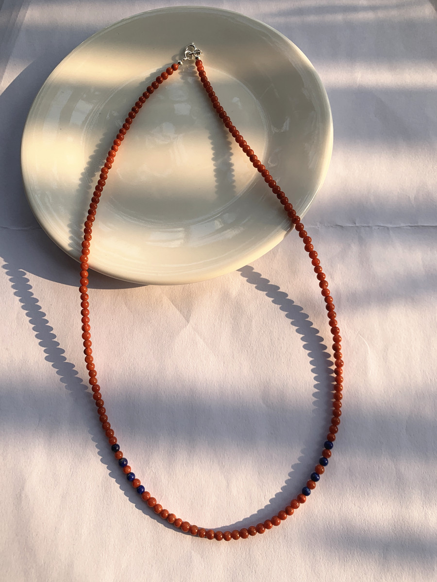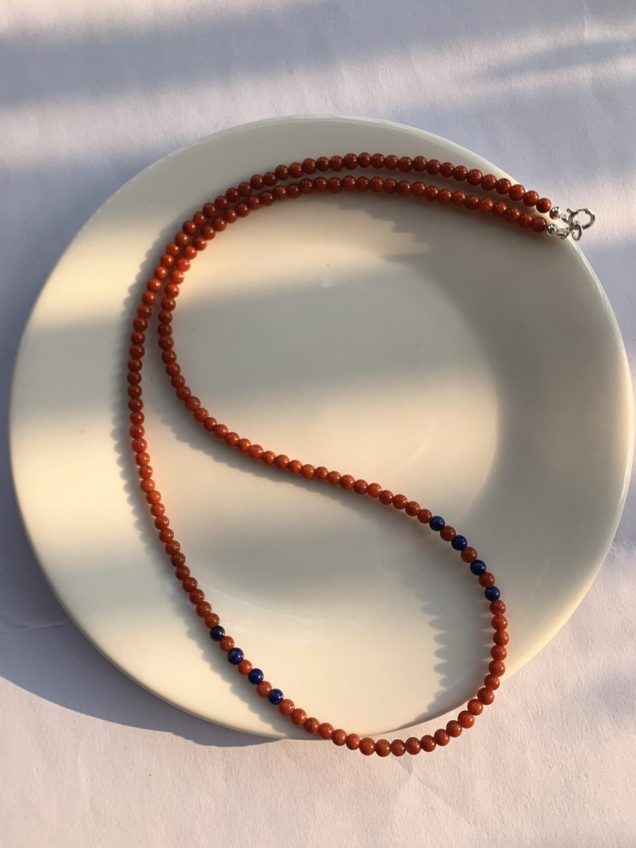 3mm极细锁骨链天然凉山南红玛瑙青金石米珠项链925银扣本命年红色