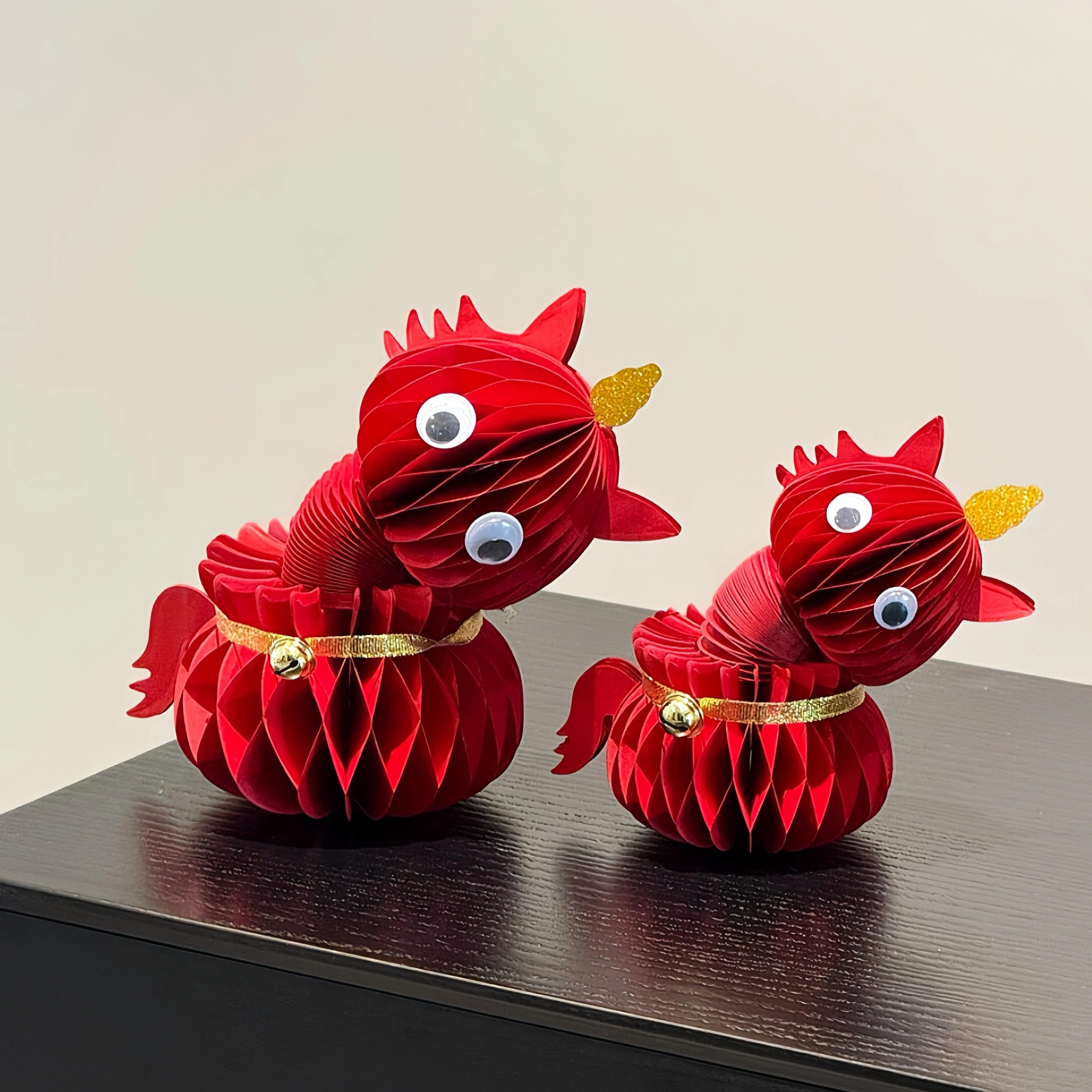 马年吉祥物红色小马摆件可伸缩蜂窝灯笼2026新年客厅玄关装饰布置