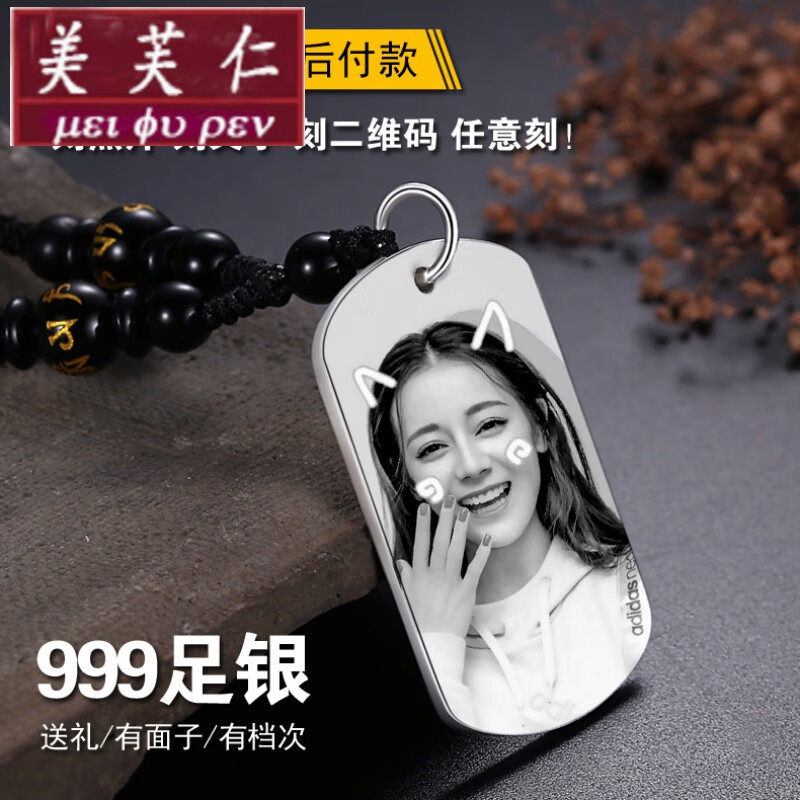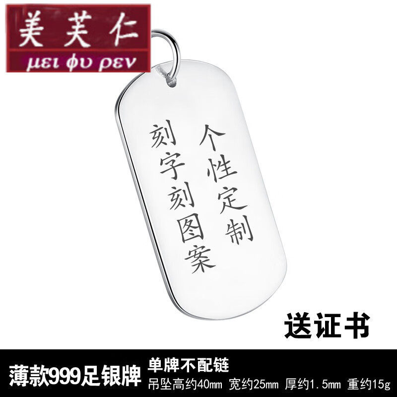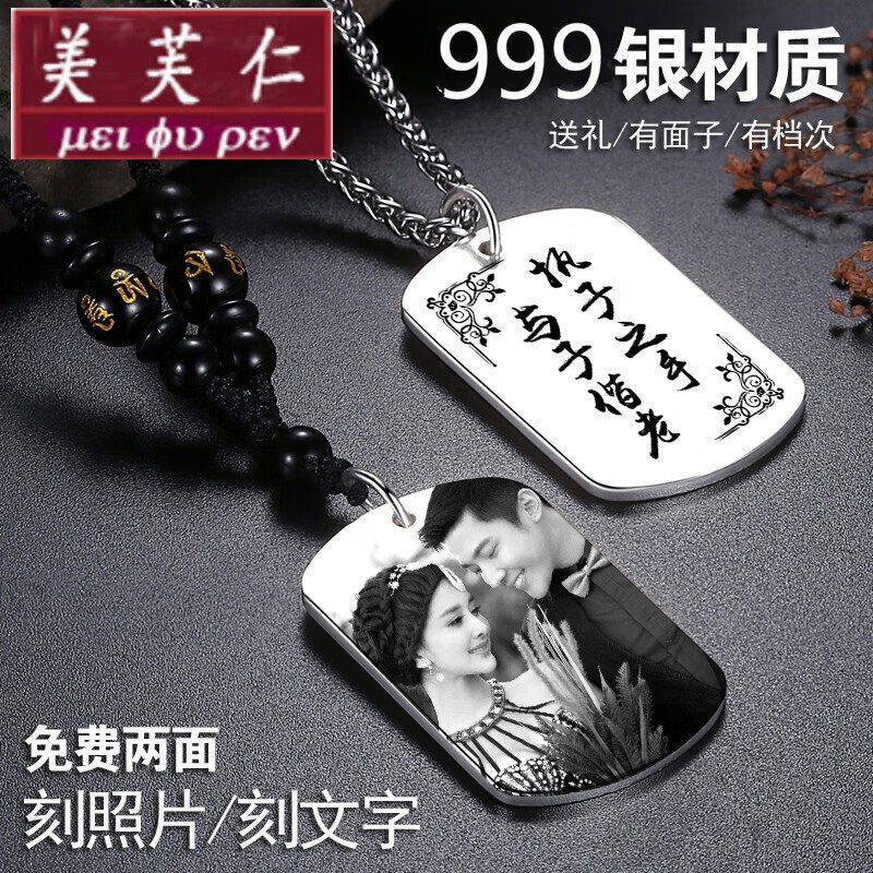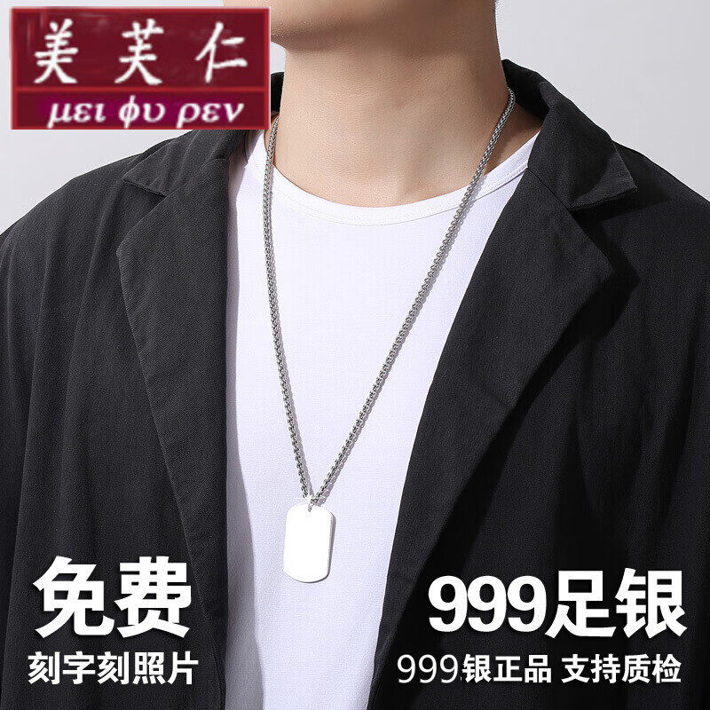 美芙仁999银军牌项链男嘻哈潮牌银牌铭牌吊坠定制男士银挂件刻字