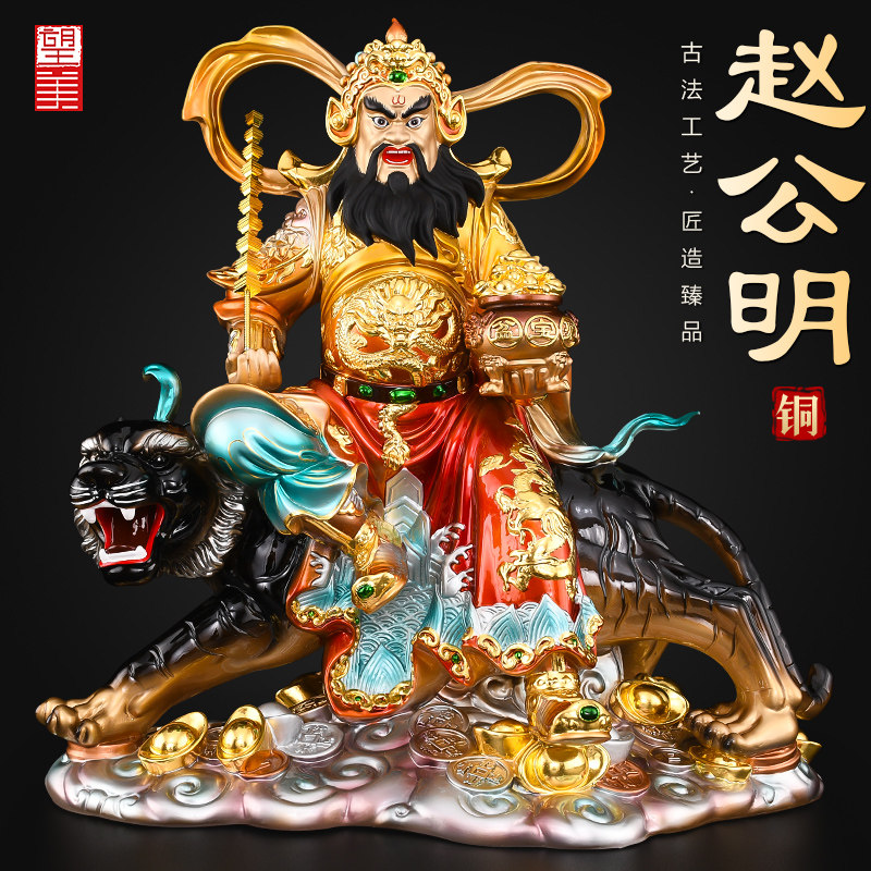 黄铜赵公明财神爷神像客厅供奉彩绘铜像武财神赵公明骑虎像摆件