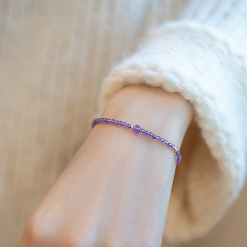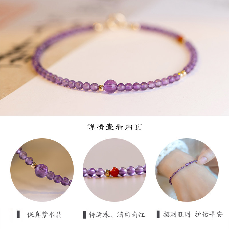 极细2mm天然紫水晶手链好运女14kins小众设计轻奢秋冬复古风手串