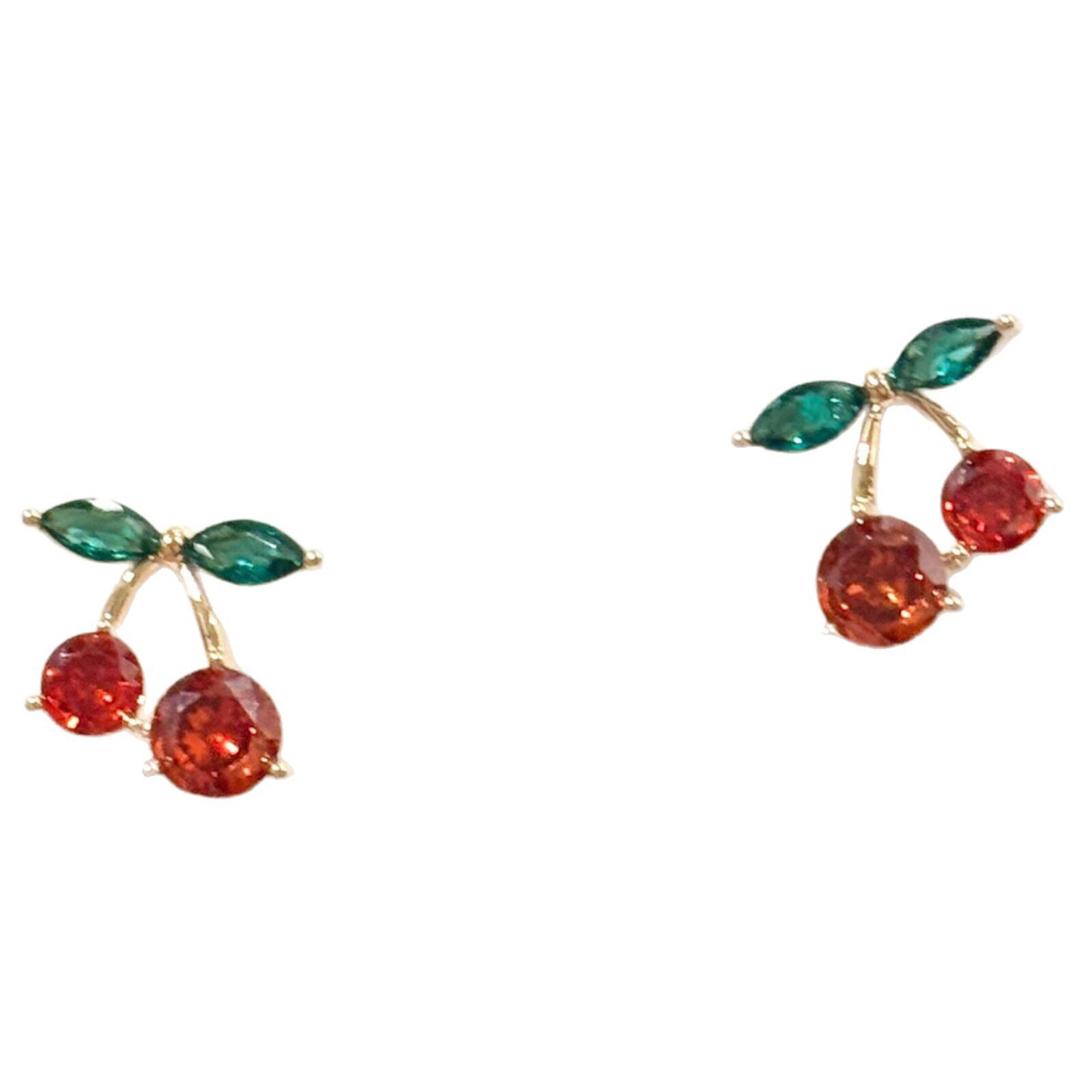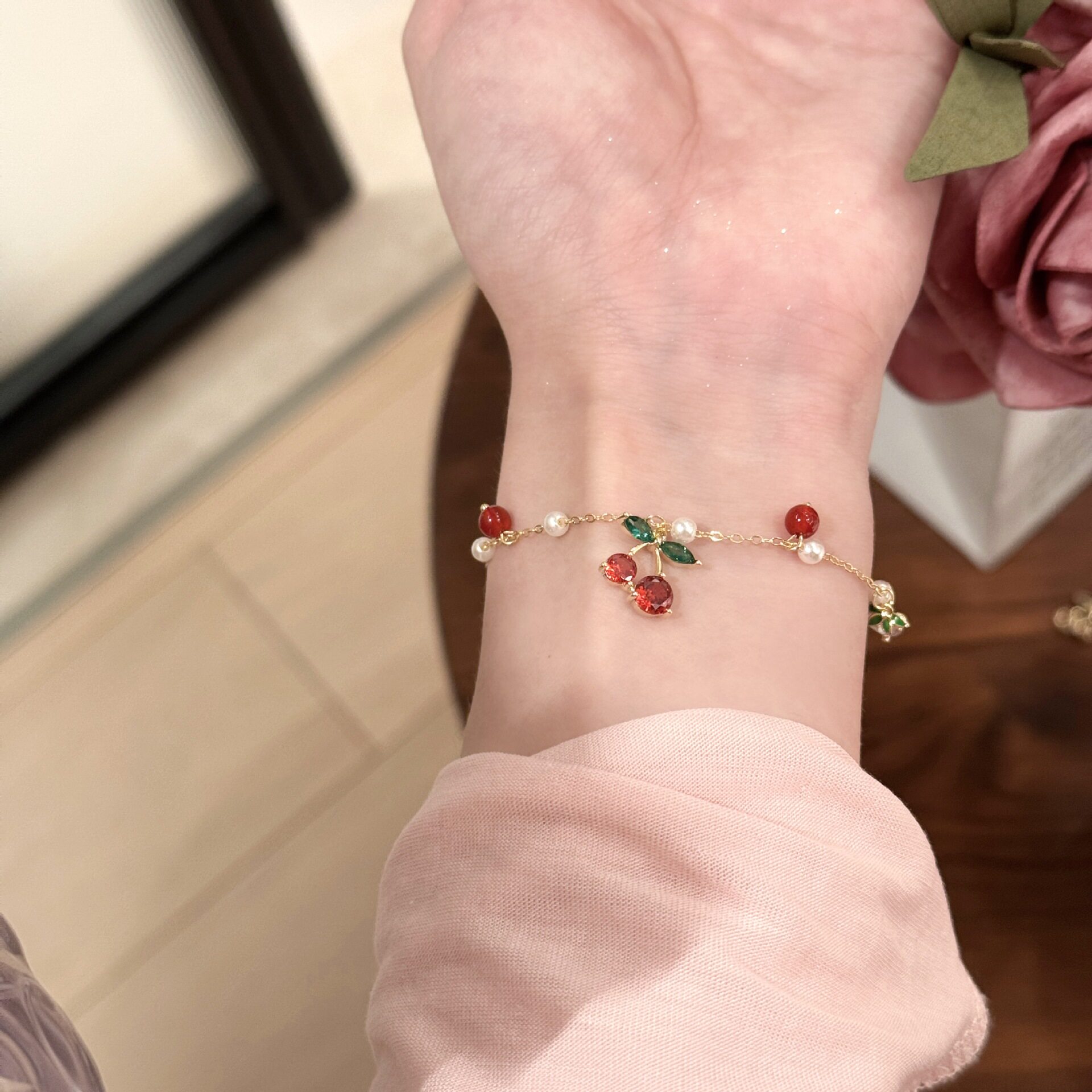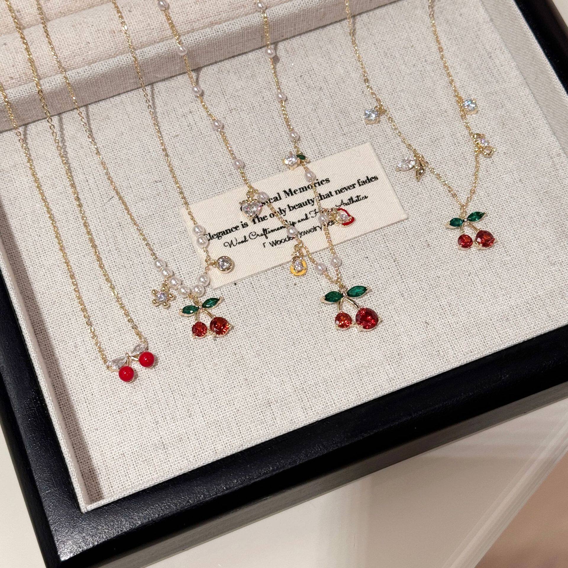 跨境樱桃红色项链耳钉套装轻奢高级感小众锁骨链气质精致套装项链