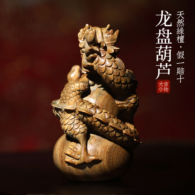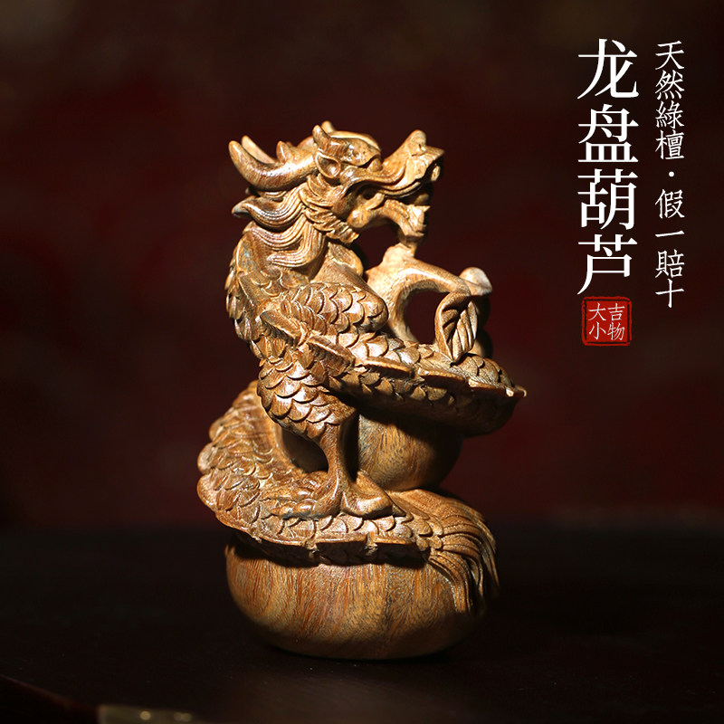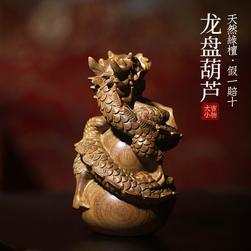 绿檀木雕生肖龙年摆件吉祥物祥龙葫芦文玩手把件摆件伴手礼品定制