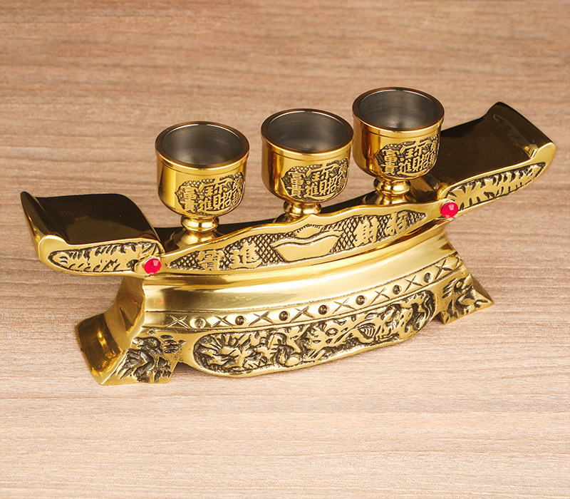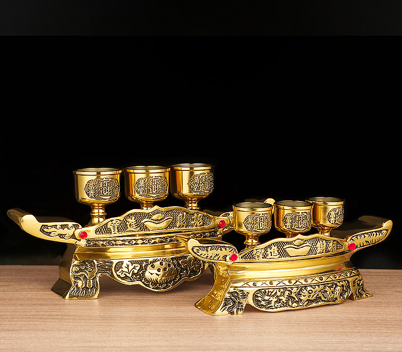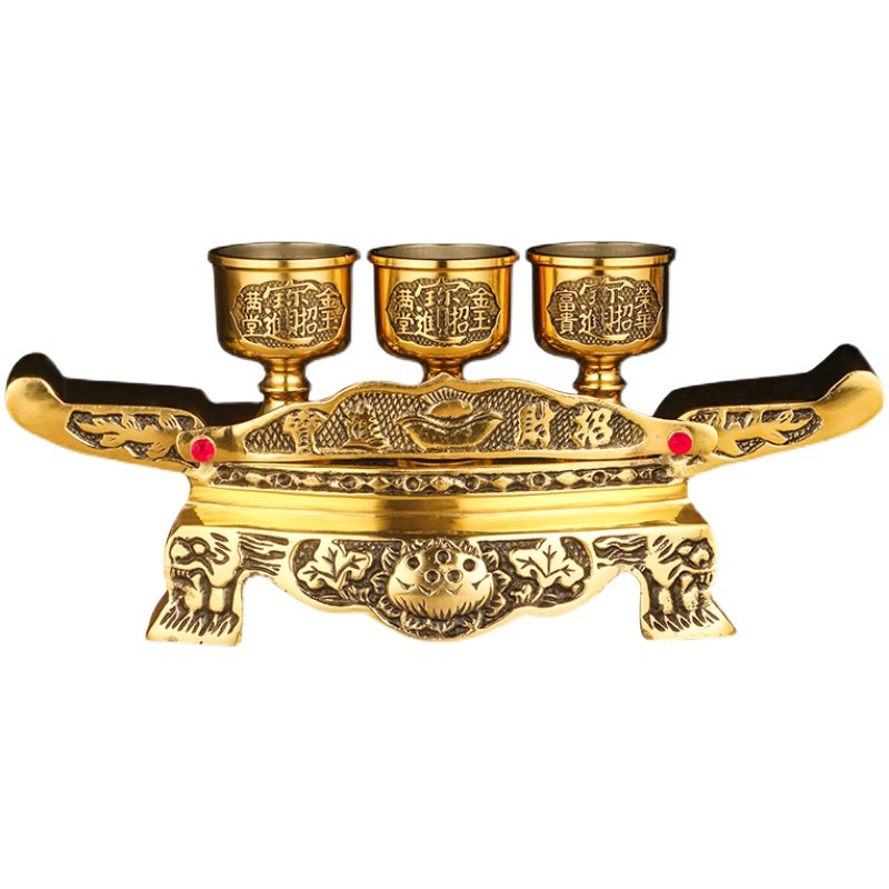 纯黄铜招财进宝元宝贡台铜酒杯圣水供杯底座佛桌敬台茶杯供杯台座