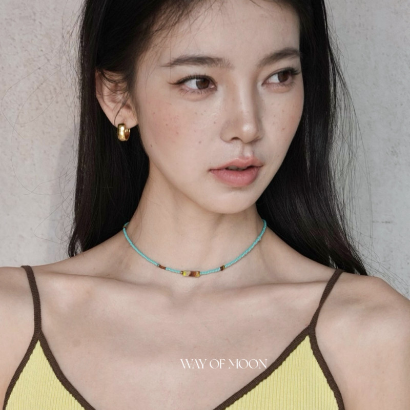 WAY OF MOON原创小众夏日蓝色精致蓝松石锁骨链帝王石串珠项链女