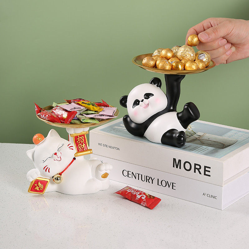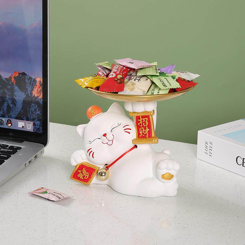 新店开业托盘摆件收银前台吧台店铺发财猫装饰品送朋友礼物