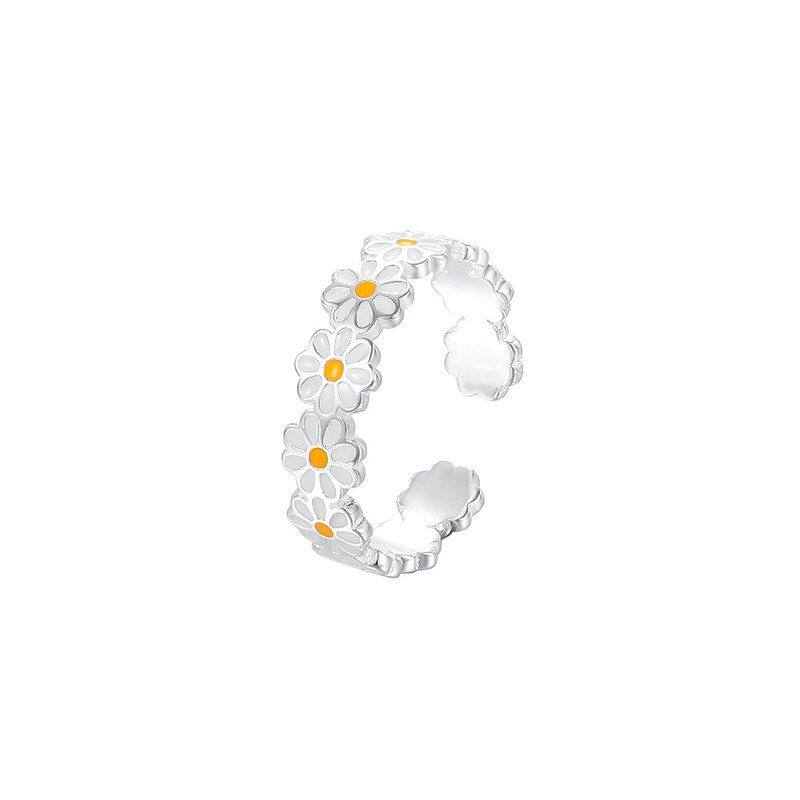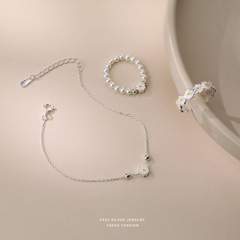 s925纯银雏菊物语戒指女简约森系百搭指环设计感白色滴胶花朵手链