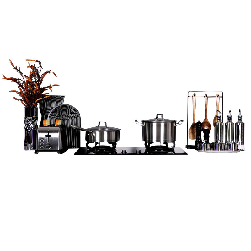 样板房间厨房组合橱柜小摆件不锈钢锅仿真燃气灶砧板软装饰品道具