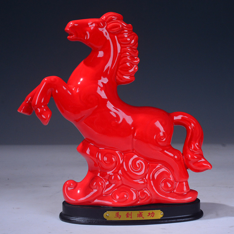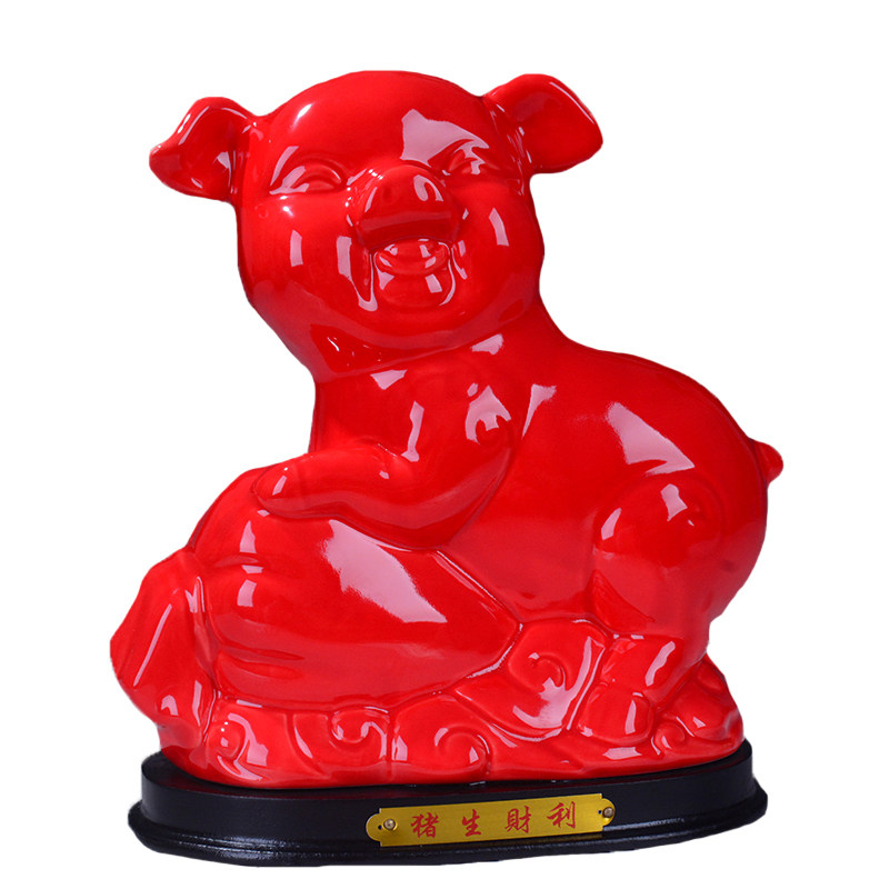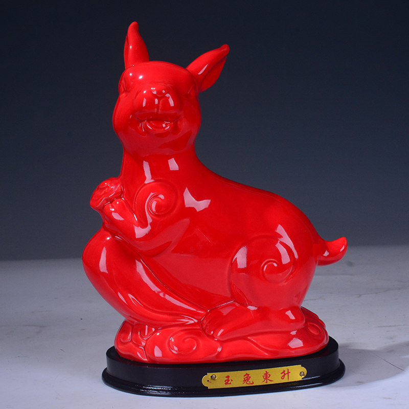 瓷器红色兔摆件 小m红兔工艺品 陶瓷生肖兔子 家居饰品 风水吉祥