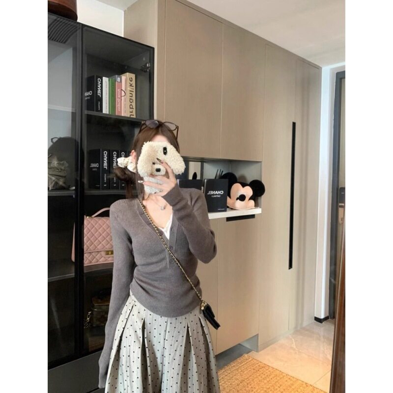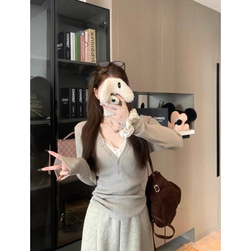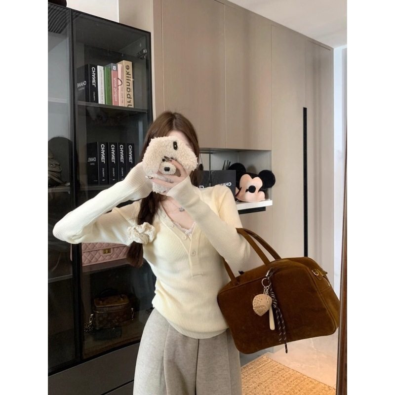 miu系减龄V领内搭针织毛衣女2025春季氛围感辣妹纯欲风打底衫上衣