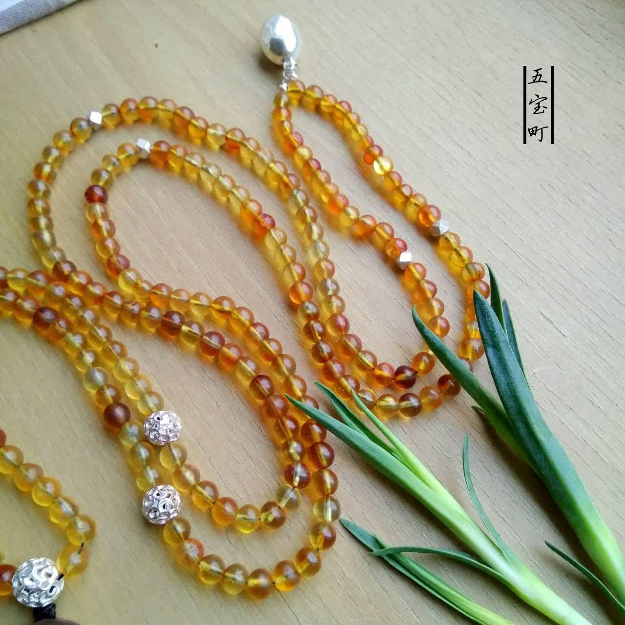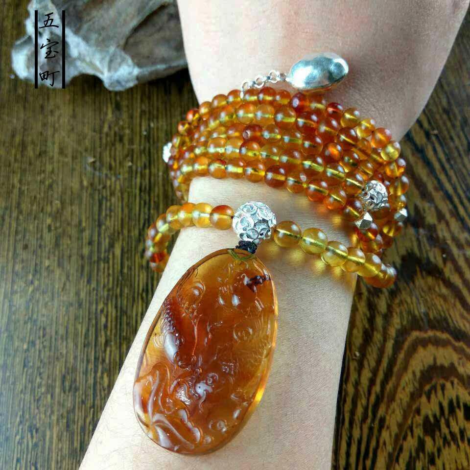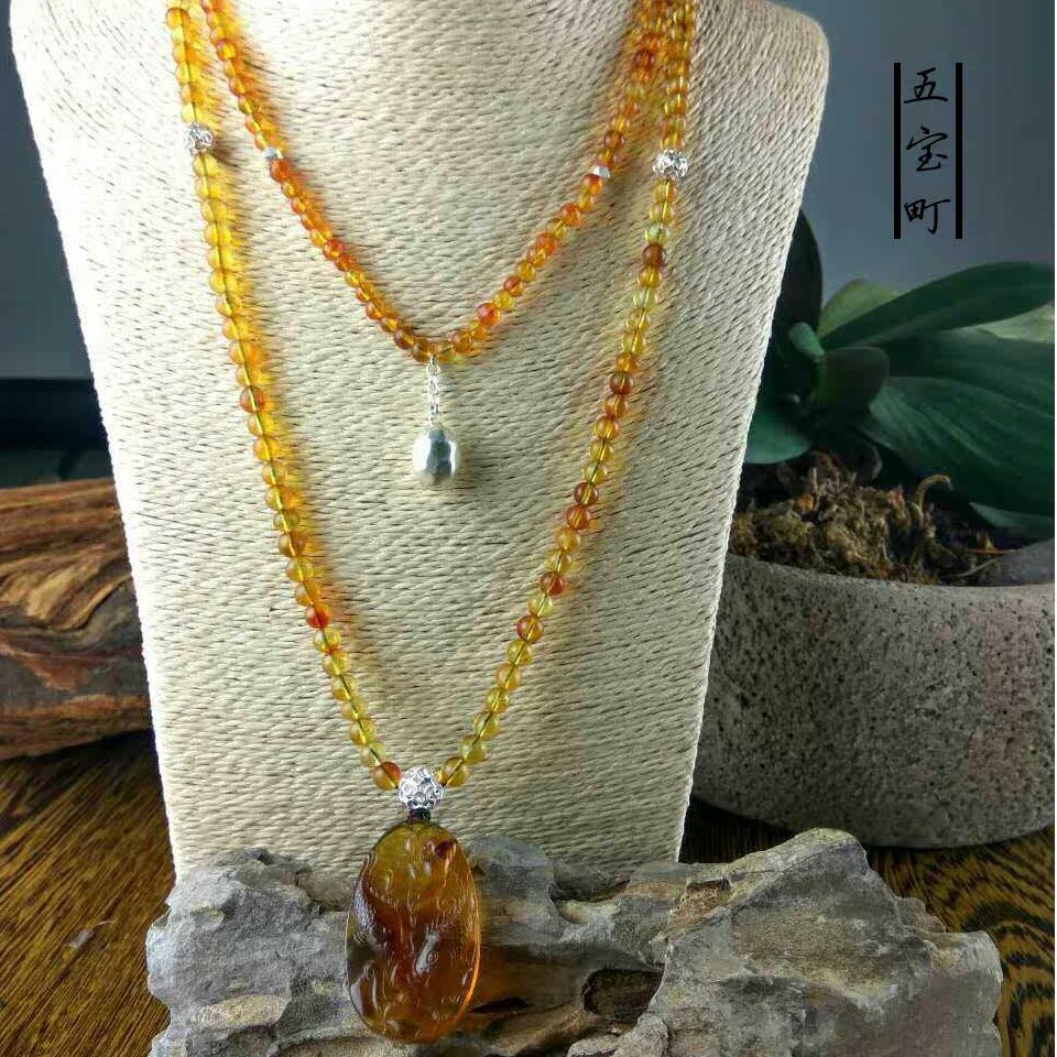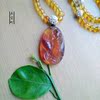 五宝町原创天然手工缅甸琥珀金棕幸运双鱼吊坠多用毛衣项链带证书