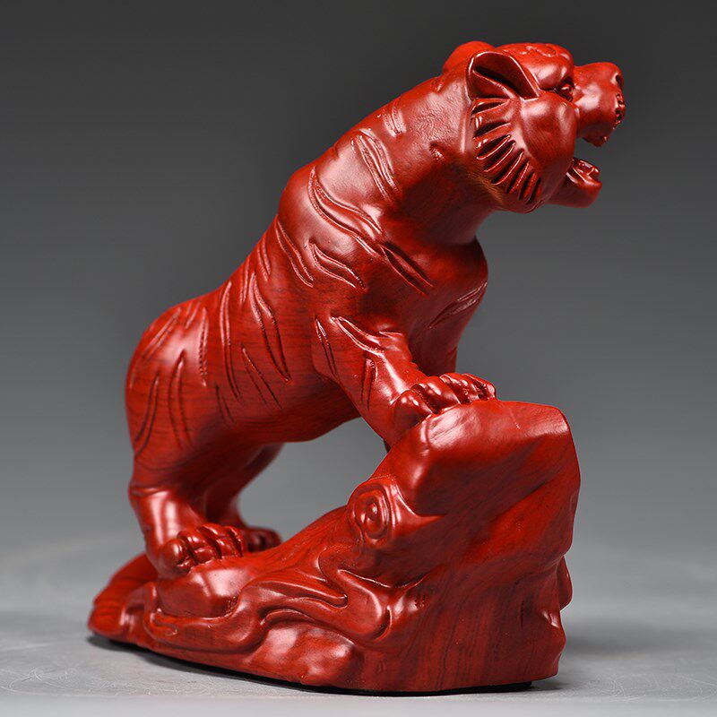 红色木雕老虎摆件实木质上山虎生肖工艺品家居办公桌面装饰工艺品