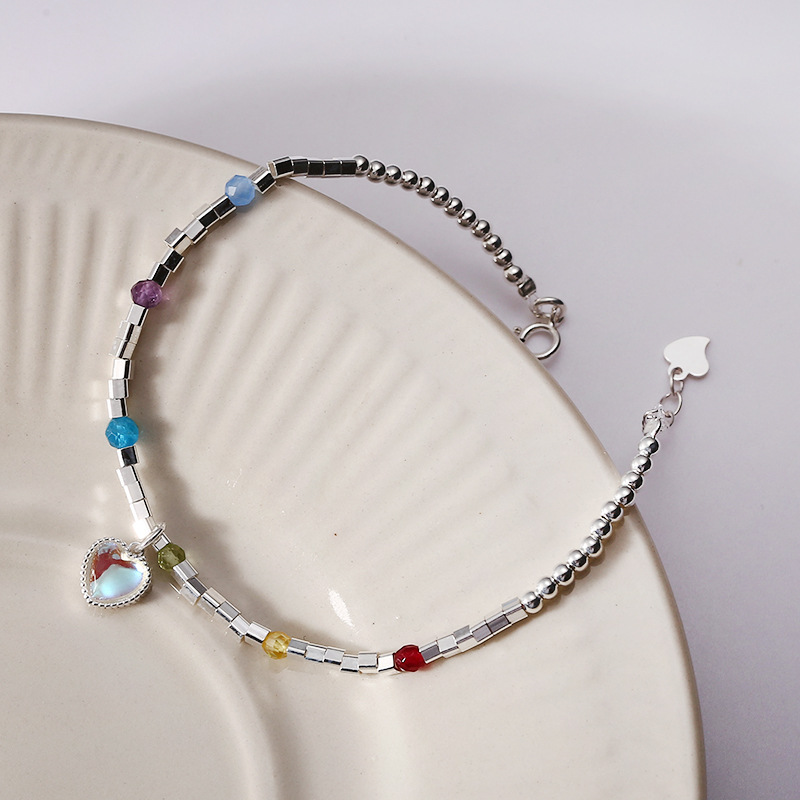 s925纯银彩虹爱心手链女轻奢小众精致手饰ins小众设计手环手串珠