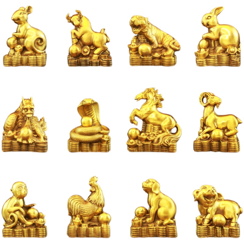 速发牛铜十二合肖摆件全套鼠牛鸡兔狗猪虎纯龙蛇马羊三生招財装饰