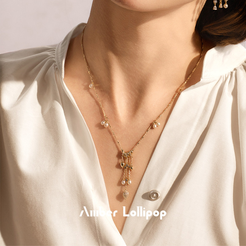 AmberLollipop淡水珍珠项链女流苏设计感吊坠颈链 告白气球系列
