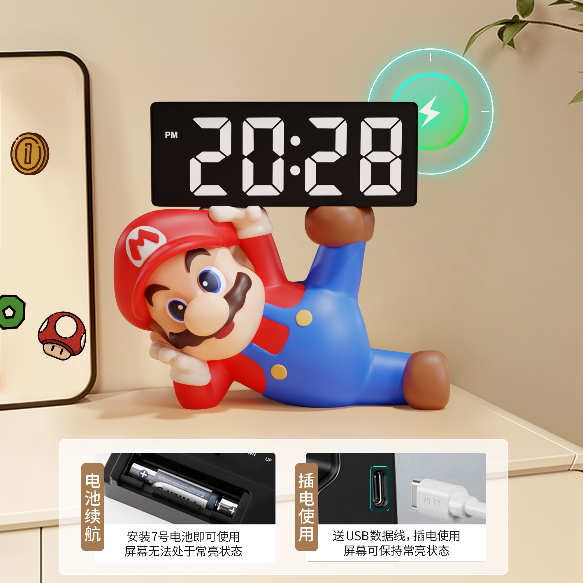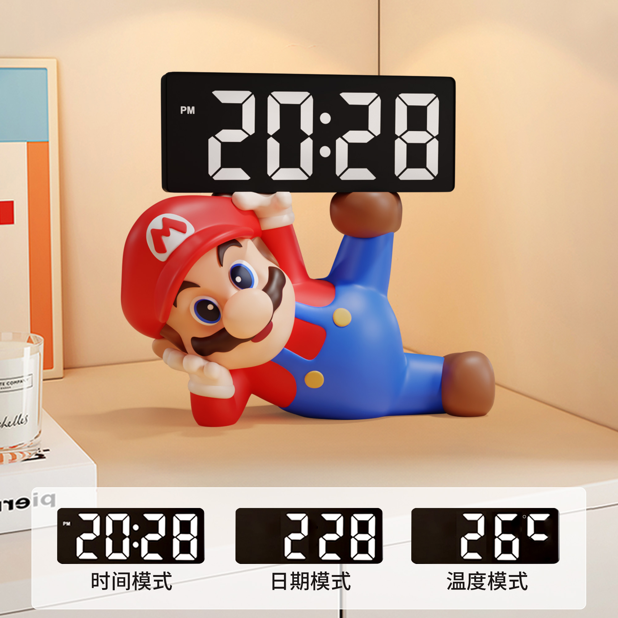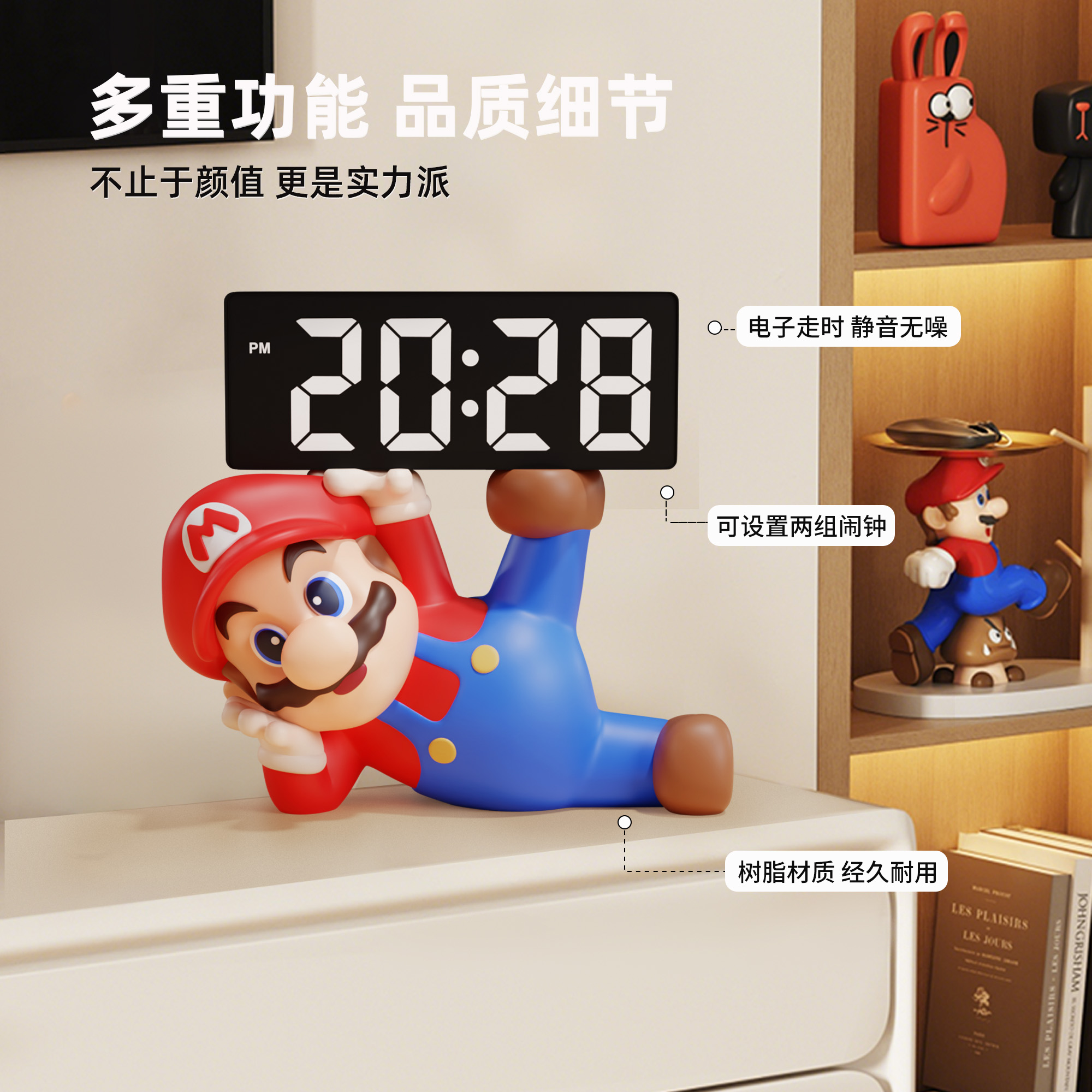 马里奥玄关装饰摆件桌面电子时钟摆台式客厅电视柜闹钟表2025新款