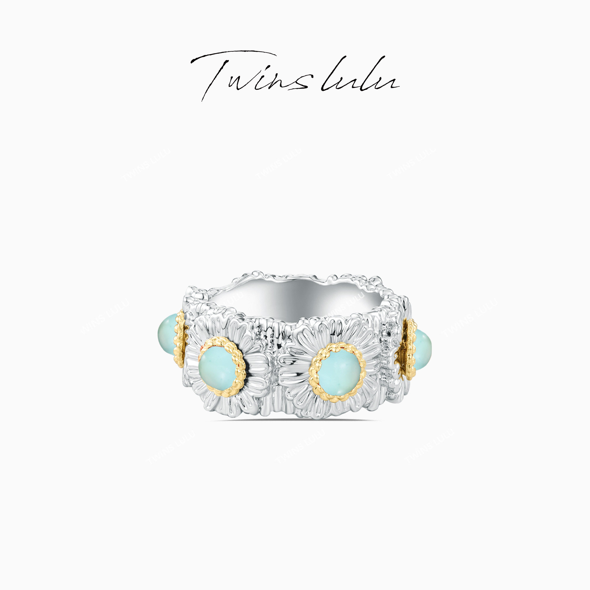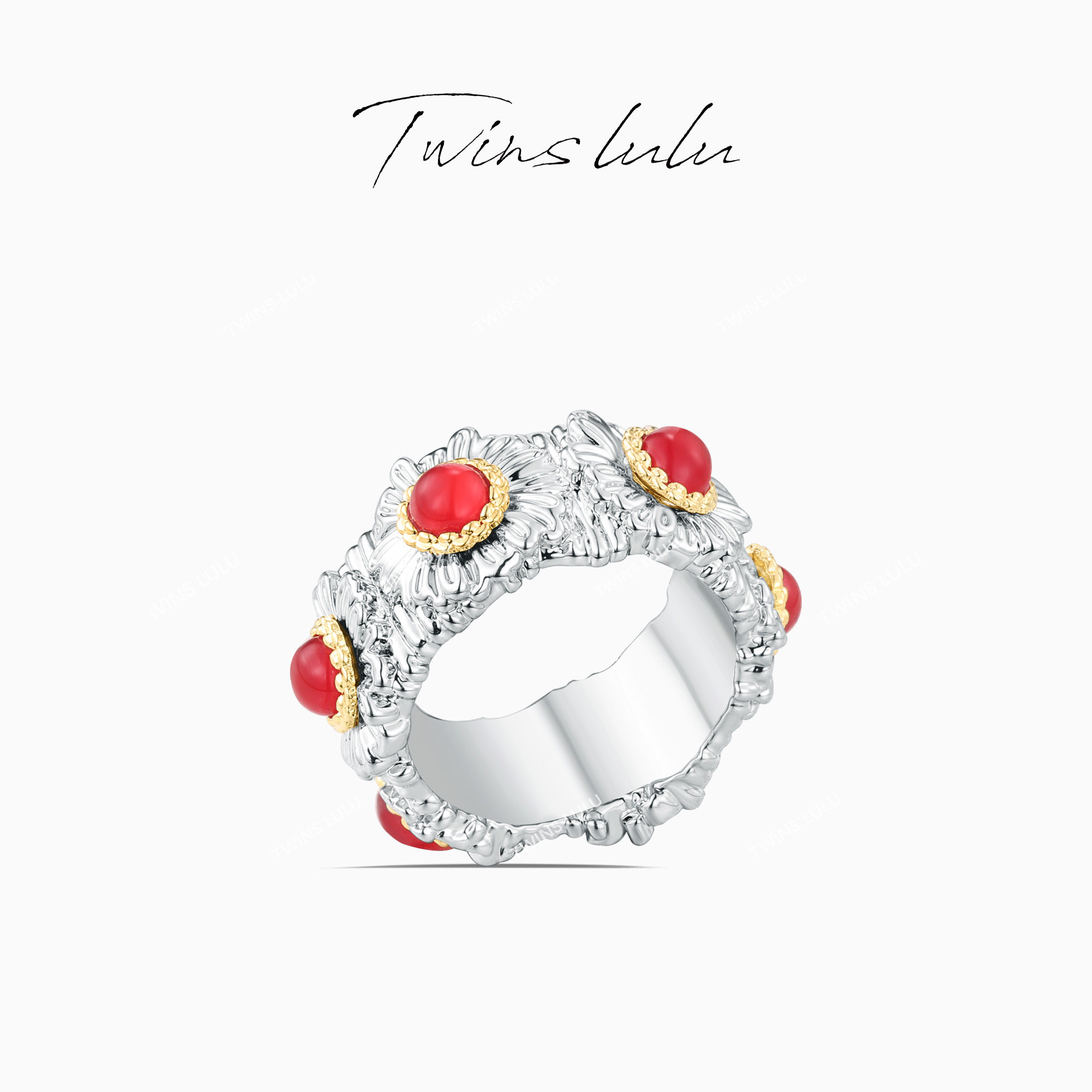 TWINS LULU时尚个性雏菊复古手工拉丝花朵蛇年红色戒指TSS7352