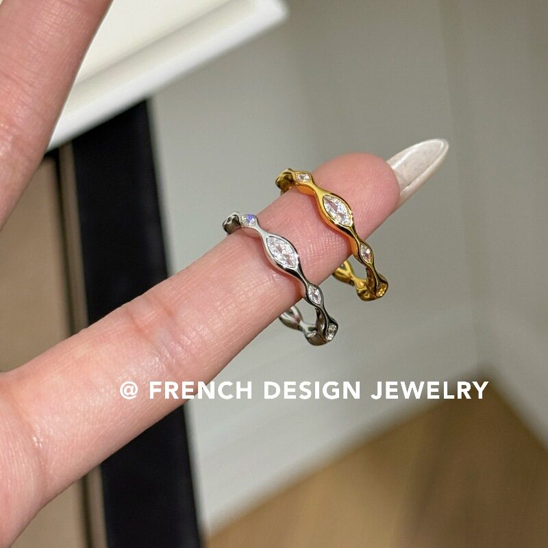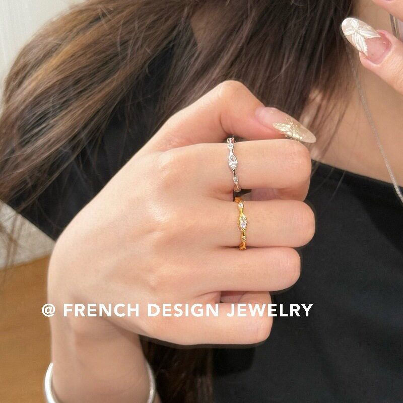 超美法式轻奢布契风拉丝锆石戒指S925纯银优雅食指戒浪漫温柔