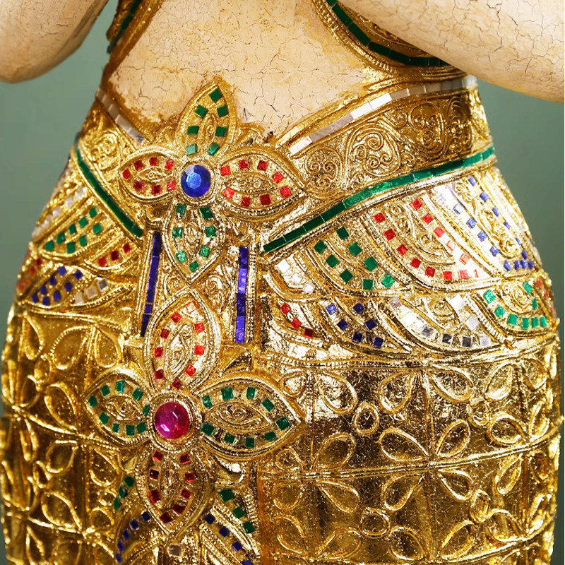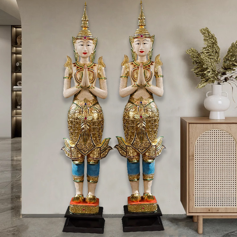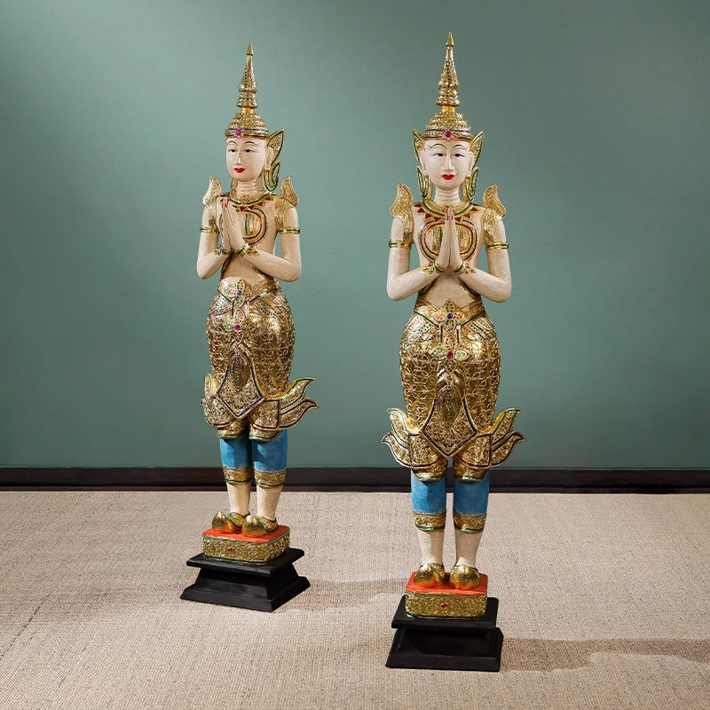 泰国实木落地站佛酒店欢迎光临摆件东南亚会所软装门口迎宾侍女
