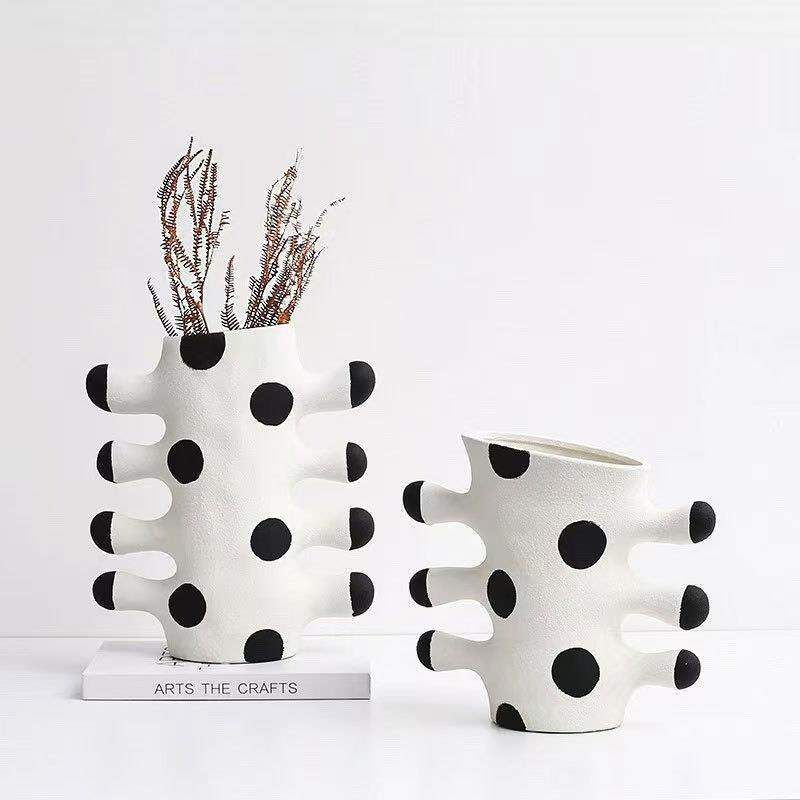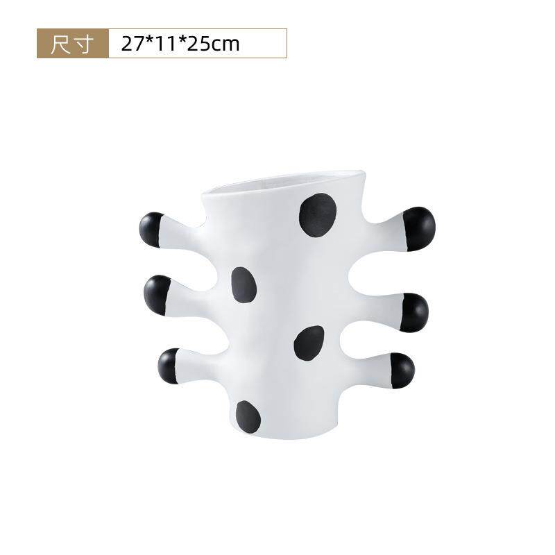 现代抽象艺术黑白色金色树脂花瓶样板间售楼处玄关台面装饰品花器