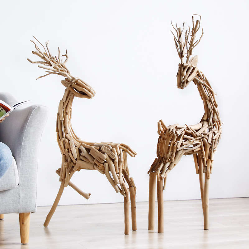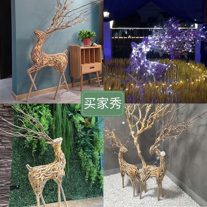 木质大鹿雕塑落地发光橱窗摆件民宿手工景区开业送礼家居新春装饰