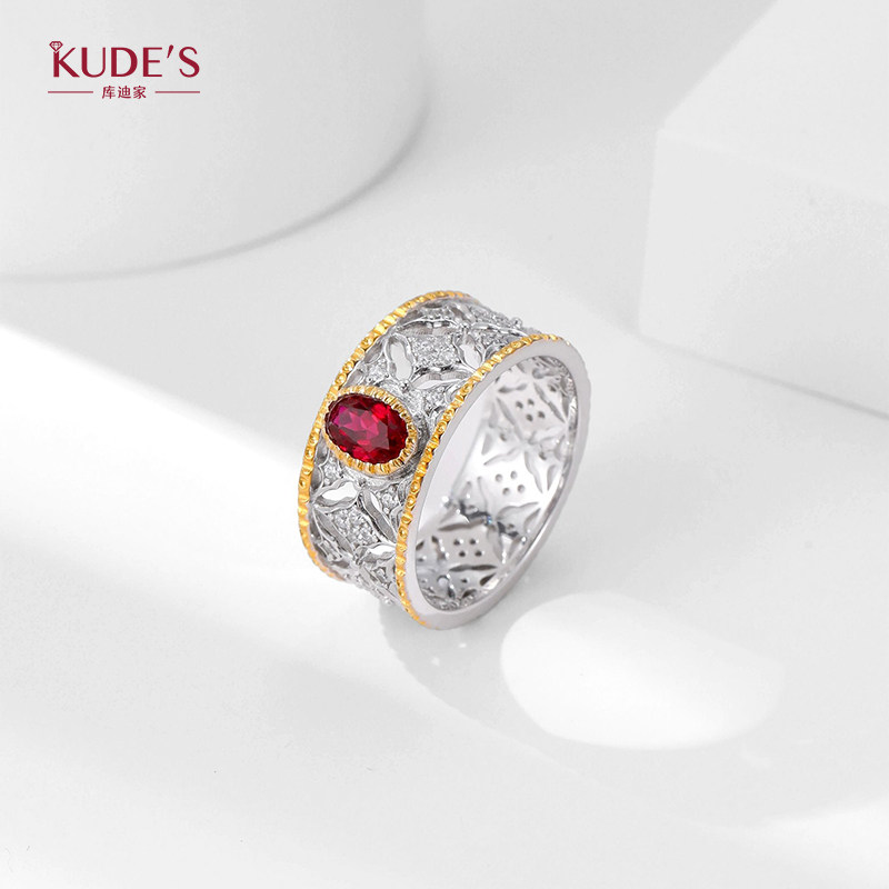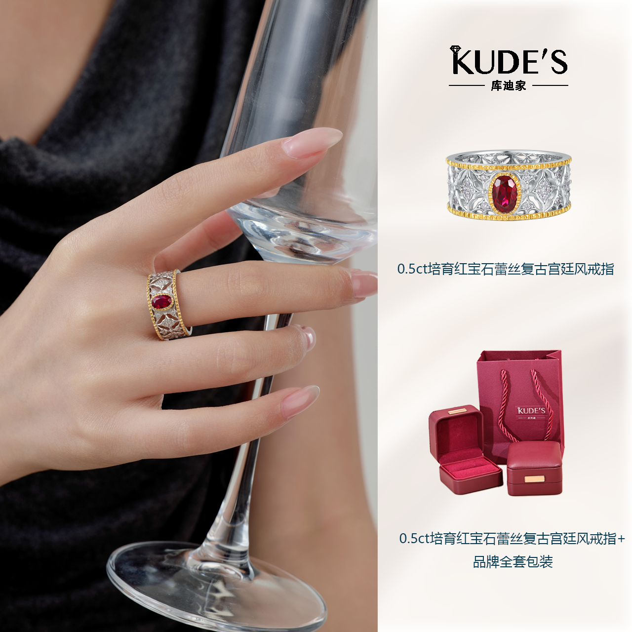 KUDE'S库迪家0.5ct培育红宝石蕾丝宫廷风戒指高级气质KD3341