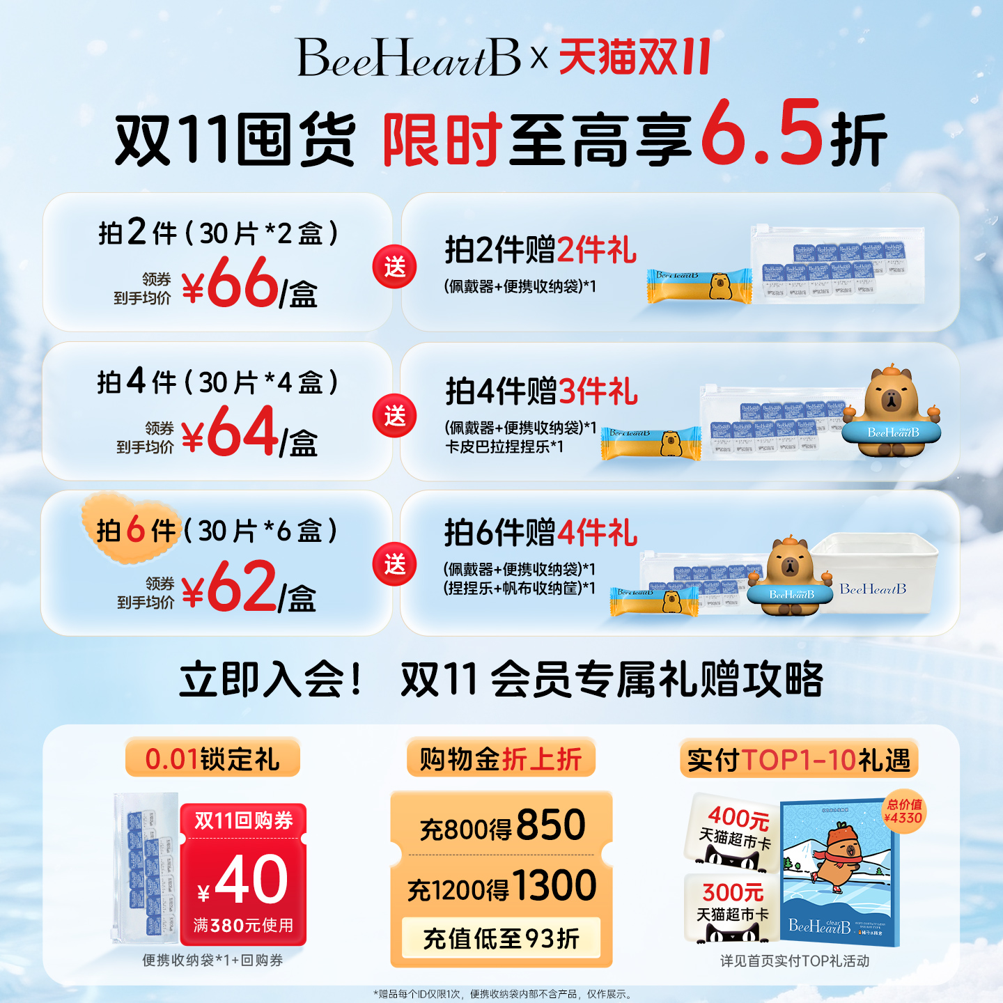 【双11抢购】BeeHeartB卡皮巴拉联名日抛30片近视隐形眼镜蜜心妍