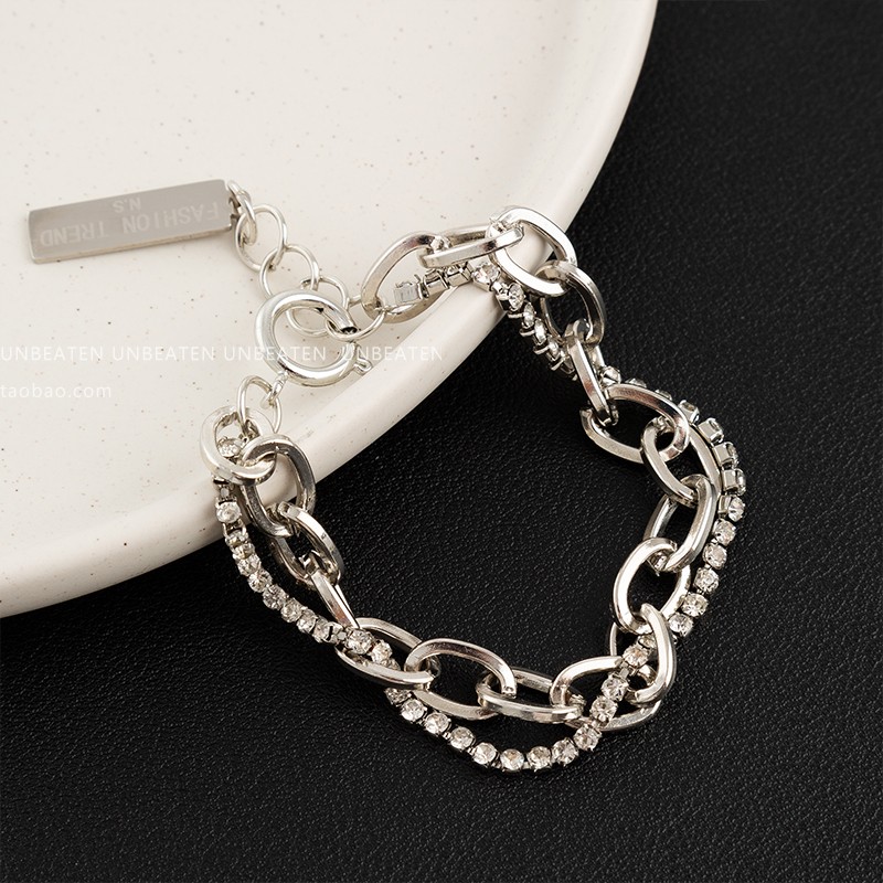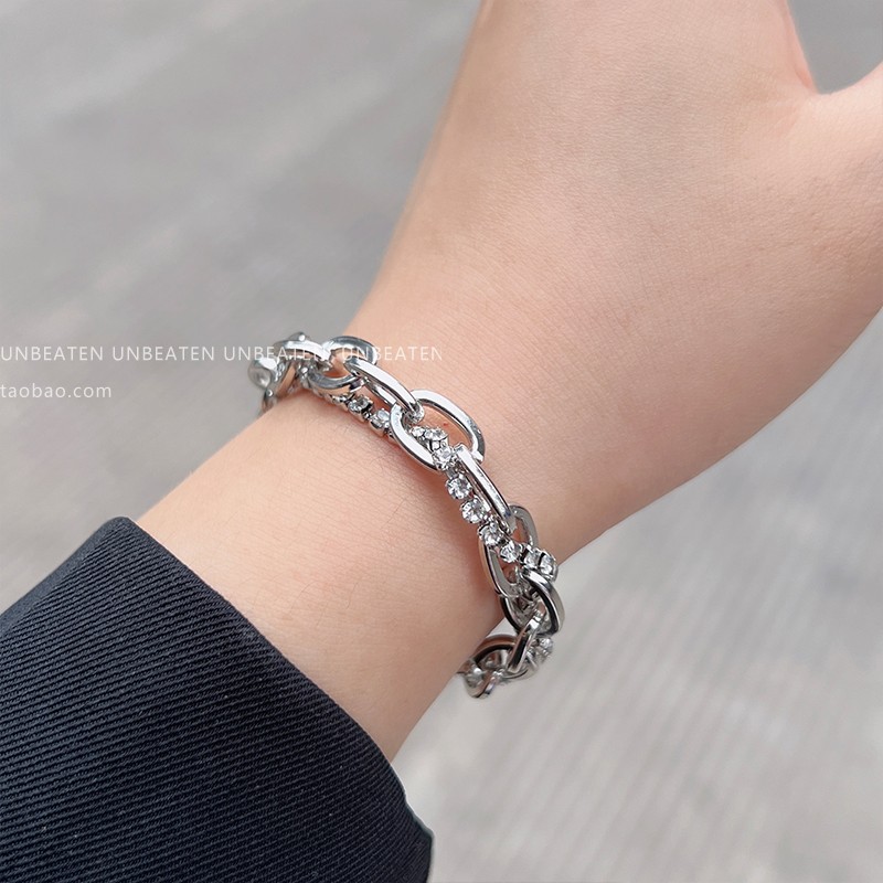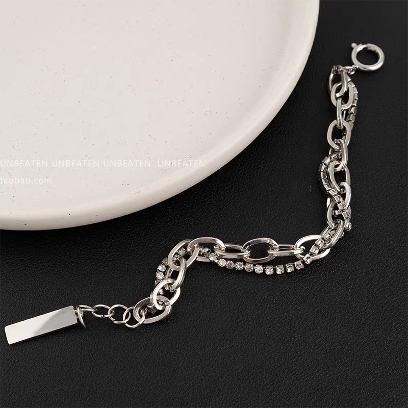 UNBEATEN双层叠戴水钻手链ins小众设计女情侣冷淡风男潮嘻哈手饰