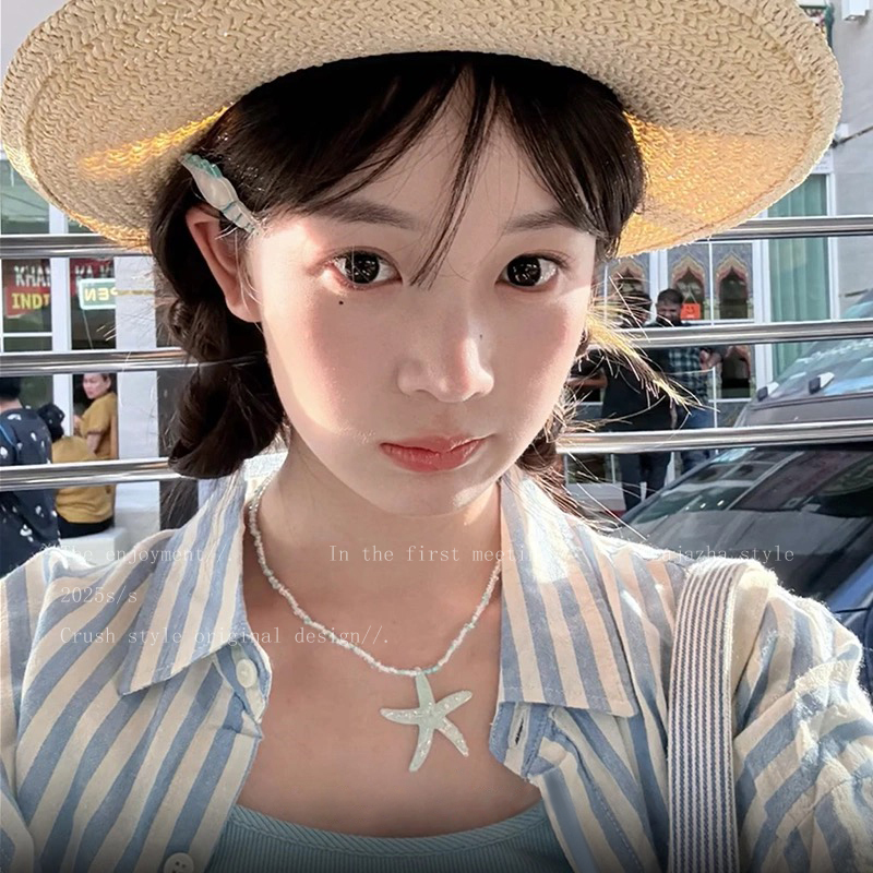 海星夏日~海边度假风串珠锁骨链女款甜酷清新项链多巴胺颈链配饰
