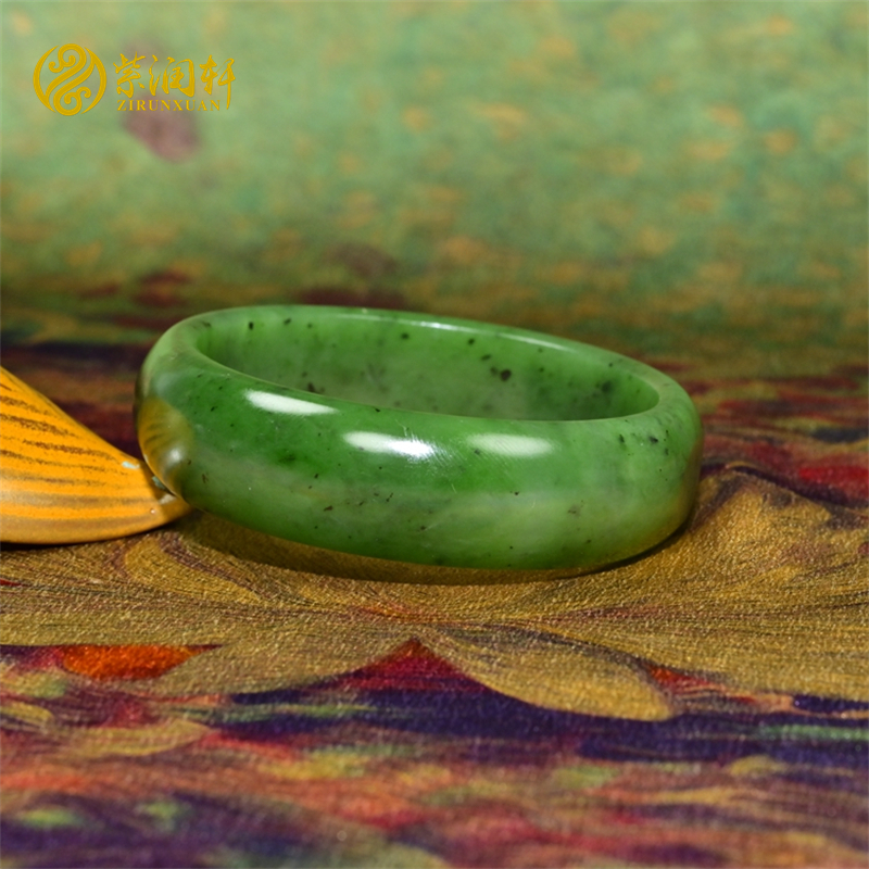 紫润轩新疆和田玉碧玉籽料手镯菠菜绿58 5MM宽版哑光镯子籽镯珍品