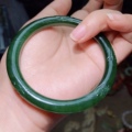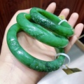 1A119 天然和田玉冰清水手镯彩绘莲花湖水绿正装描金特色青白玉
